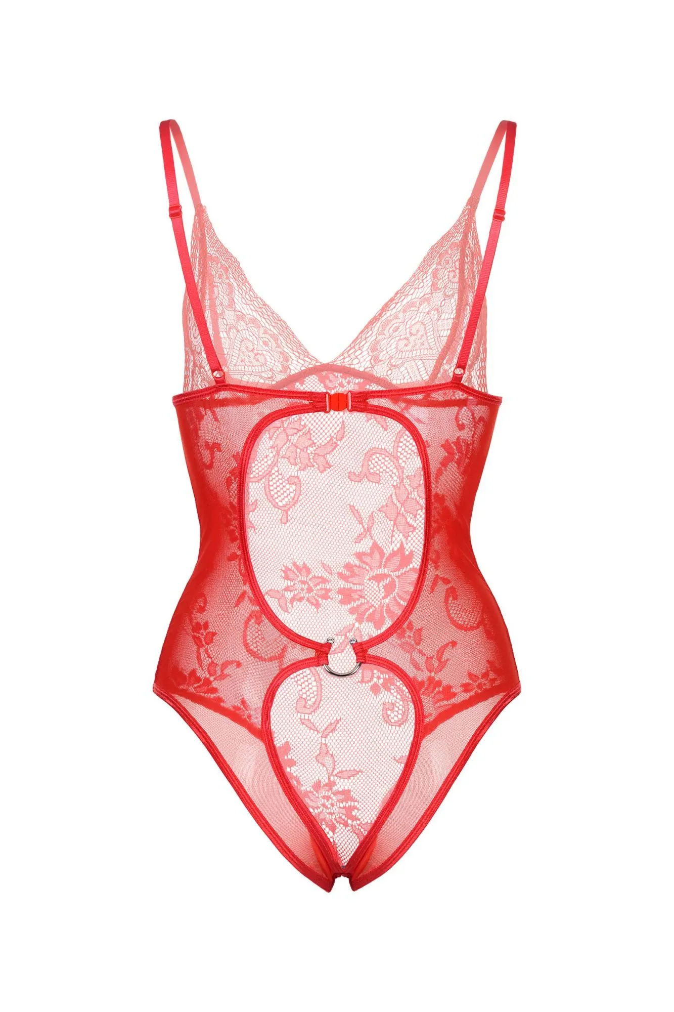 Эластичное боди из мягких материалов: кружева и сетки. Открытый доступ сзади и эффектный акцент в виде металлического полукольца притягивают все внимание к себе. Регулируемые бретели и застежка на уровне груди сзади обеспечивают идеальную посадку.