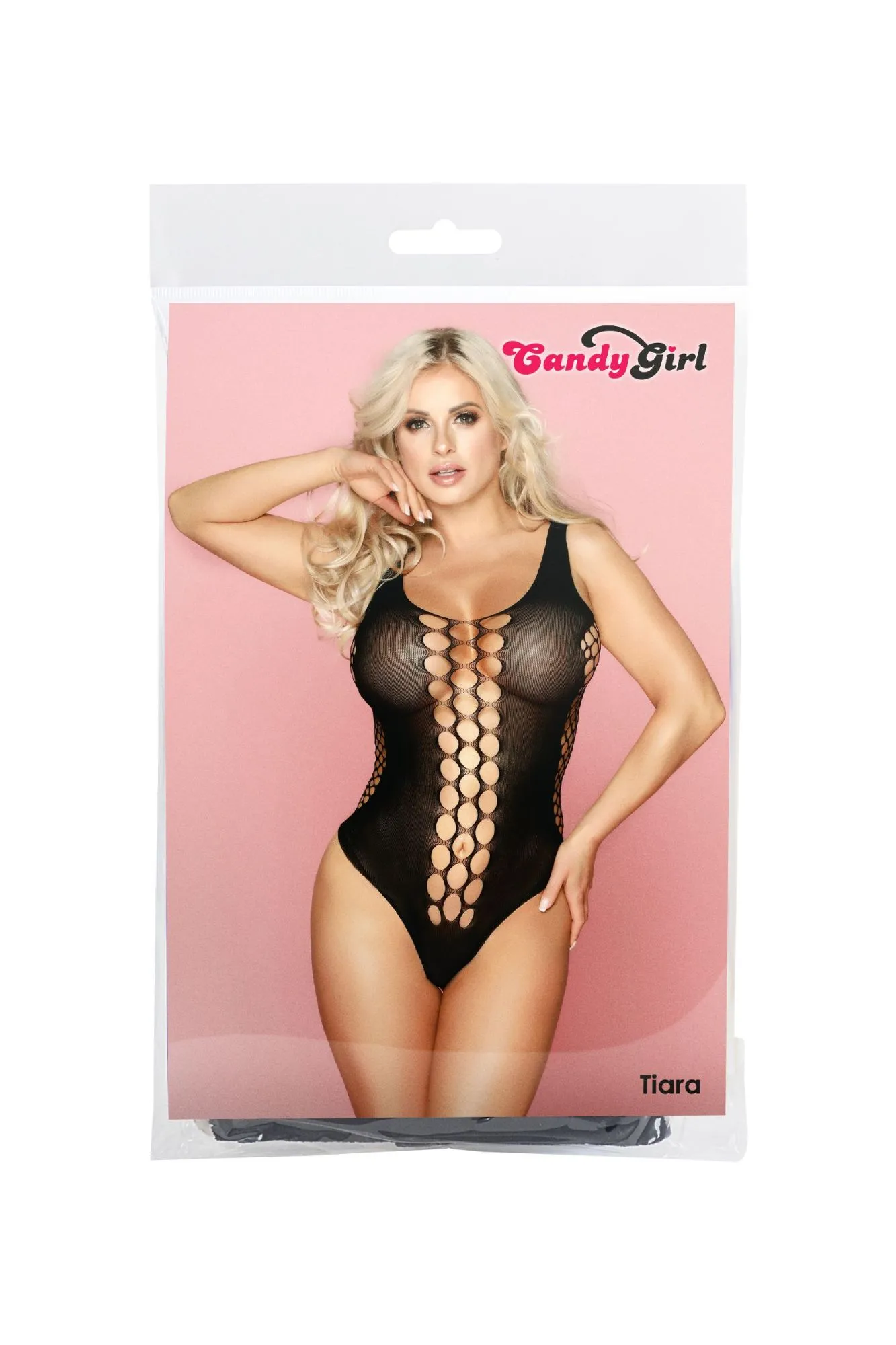 Бесшовное боди из сетки Candy Girl® Tiara идеально садится по фигуре. Сочетание сеток разной плотности визуально вытягивает силуэт. Широкие бретели обеспечивают комфорт.