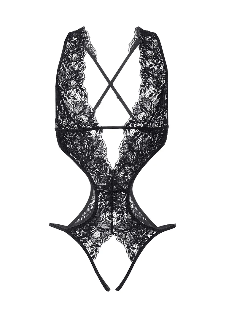 Эротическое боди Erolanta® Anais кружевное, эластичное. Глубокое декольте, спина и интимный вырез оформлены свободным кружевным краем. Перекрещивающиеся регулируемые бретели. *Допускается замена кружева на аналогичное.