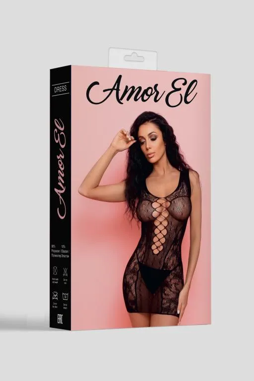 Эротическое мини-платье с глубоким круглым вырезом. Дизайн в виде кружевного рисунка и дополнен шнуровкой спереди. Благодаря использованию большего количества нейлона, белье сохраняет очертания, не деформируется, растягивается и выгодно облегает фигуру. А за счет эластана, даже после сильного растяжения, оно не деформируются, и всегда принимает исходную форму.