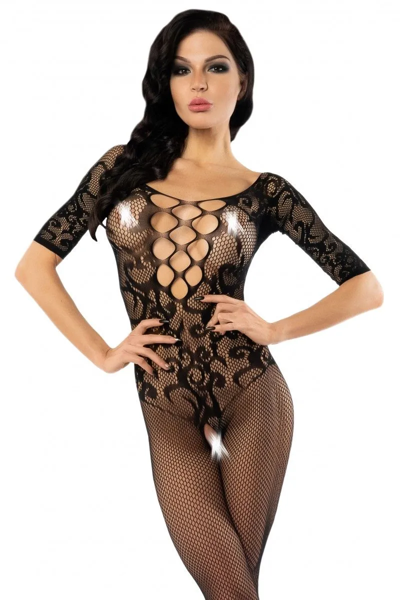 —Комбинезон-сетка кружевной с доступом, черная