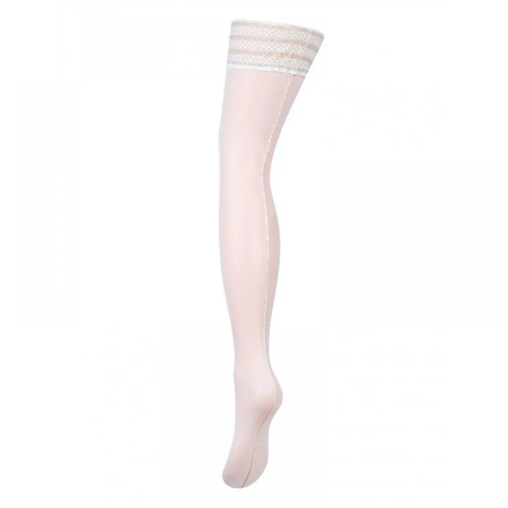 Элегантные, сексуальные чулочки Charmante Orlo из микросетки с оригинальной коронкой на силиконовой поддержке, с эффектным задним швом из люрексовых нитей.