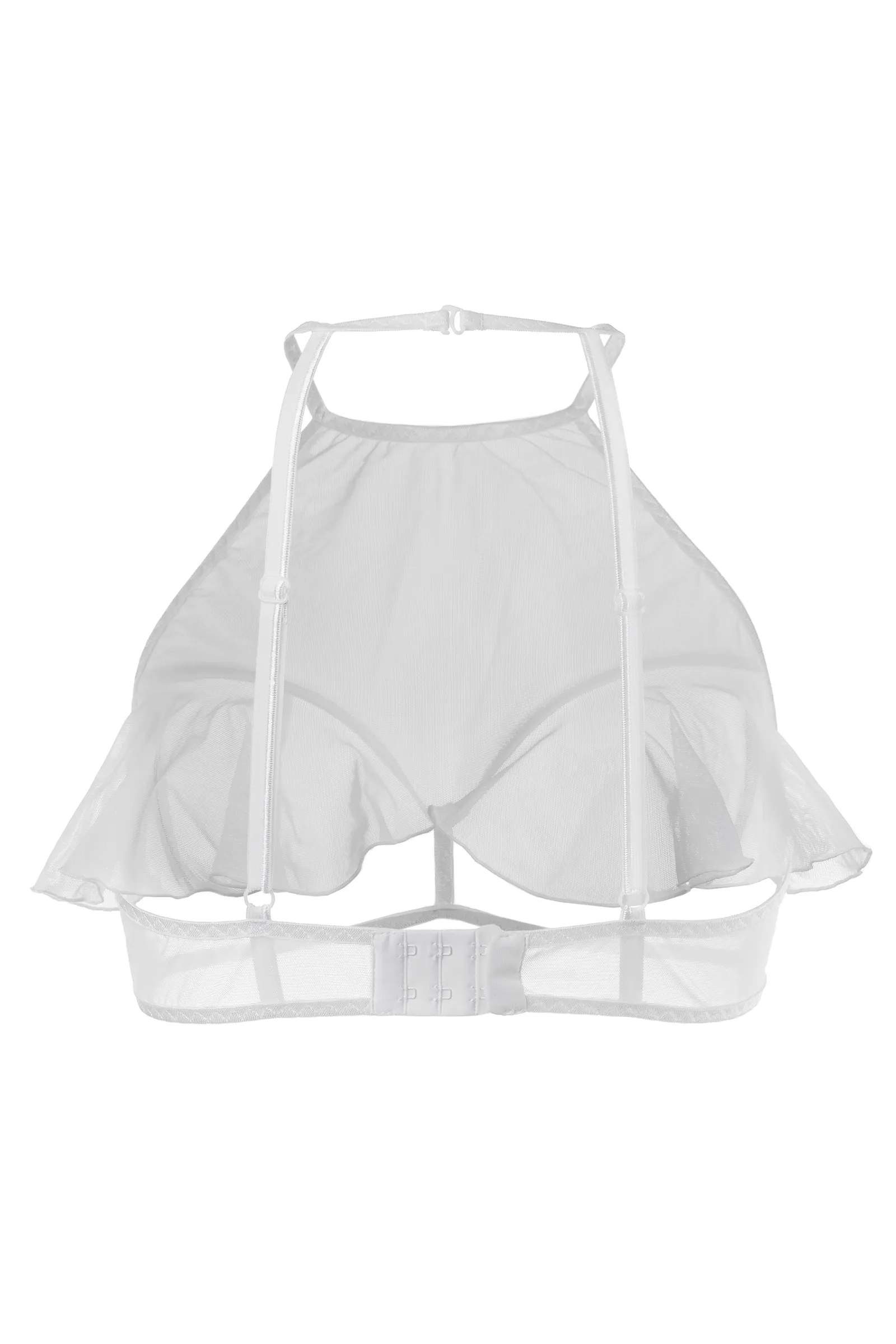Откровенный бралетт Karen от Erolanta® не оставит вашего мужчину равнодушным. Мягкий топ из невесомой эластичной сетки приковывает взгляд к линии декольте. Очаровательные воланы игриво открывают доступ к груди. А тонкие регулируемые бретели, застежка на шее и многорядная застежка на спине обеспечивают комфортную посадку, которая позволит чувствовать себя невероятно уверенно. Заставьте сердце любимого биться чаще с бралетт Karen от Erolanta®.