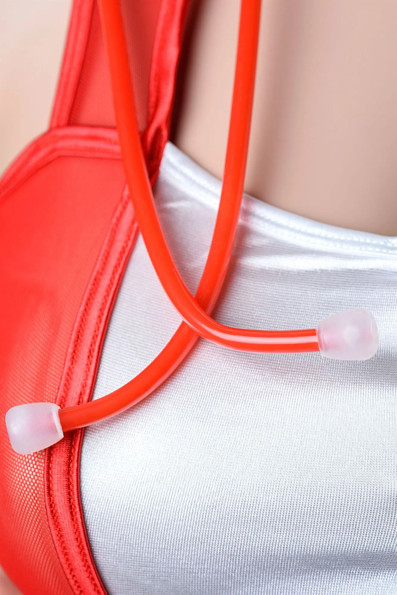 Эффектное платье медсестры Candy Girl® Gigi с открытой спиной и воротником-стойкой на ''липучке'' – лучший наряд для оказания неотложной сексуальной помощи. Ободок и игрушечный стетоскоп помогают перевоплотиться в образ в считанные секунды.