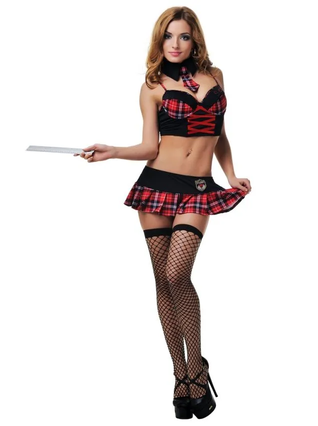 Эротический костюм от компании Le Frivole преобразит Вас в примерную ученицу, готовую со всем вниманием слушать наставления своего любимого учителя. Костюм позволит Вам с партнером полностью погрузиться в атмосферу ролевой игры и исполнить все свои тайные фантазии. Мини-юбочка в красную клетку подчеркнет длину и стройность ножек, а короткий топ с декоративной шнуровкой акцентирует внимание на груди и животе. Довершит Ваш образ воротничок с галстуком и соблазнительные чулочки в крупную сетку.