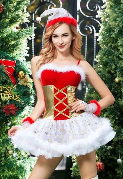 Соблазнительный новогодний костюм снегурочки подарит вашему празднику "перчинки" и позволит, с помощью ролевой игры, раскрепоститься и осуществить все свои новогодние желания. В комплекте: мини-платье, перчатки, колпачок и трусики.