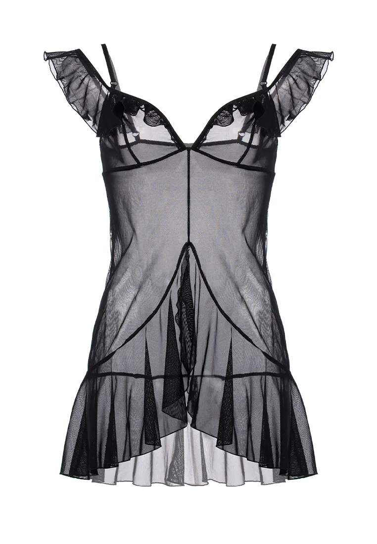 Комбинация Marianne от Erolanta® с широкими воланами и небольшим вырезом спереди создана, чтобы превращать в реальность самые романтичные грезы. Тонкая прозрачная эластичная сетка таинственно окутывает тело, призывая раскрыть секрет каждого изгиба. Игривые «крылышки» могут дублировать тонкие бретели или кокетливо открывать плечи. Регулируемые бретели обеспечивают безупречную посадку по росту. А пикантный вырез спереди вдохновляет на откровенные действия. Будьте самой обаятельной в комбинации Erolanta® Marianne.