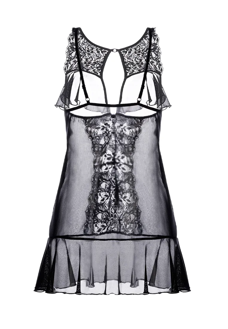 Комбинация Erolanta® Margarita с открытой грудью, из эластичной сетки со вставками кружева. Бюст и подол декорированы мягкими оборками. Регулируемые бретели. *Допускается замена кружева на аналогичное.
