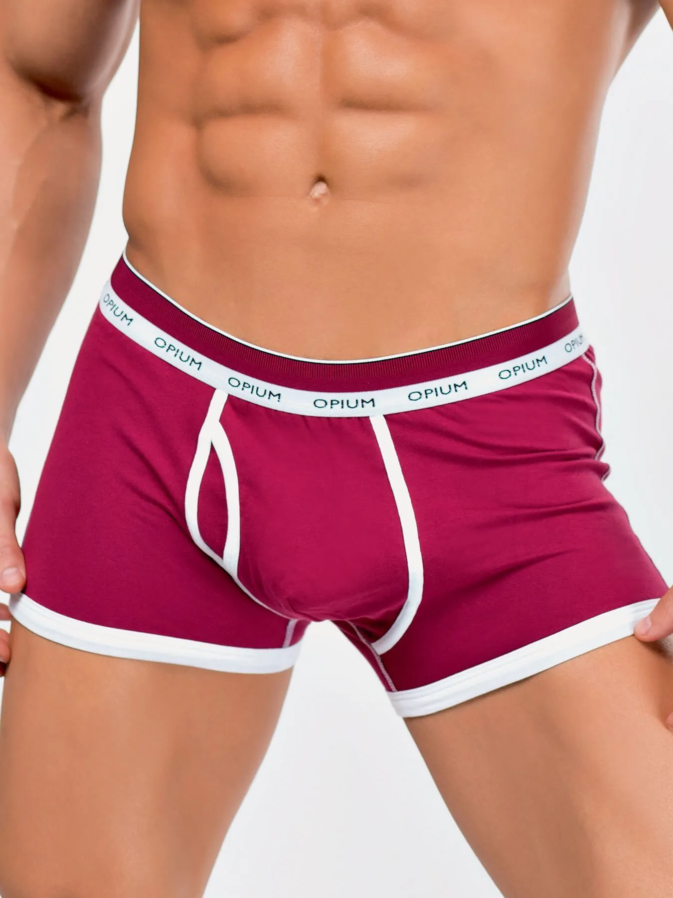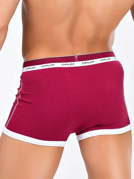 Мужские боксеры, которые Вы будете хотеть носить чаще остальных, благодаря интересному цветовому решению: бодрый сочный бордовым цвет основной ткани с белым кантом. Эти трусы выполнены из хлопковой ткани с эластаном, имеют удобный анатомичный крой, функциональное боковое отверстие, нарядную комфортную резинку с логотипом Opium.