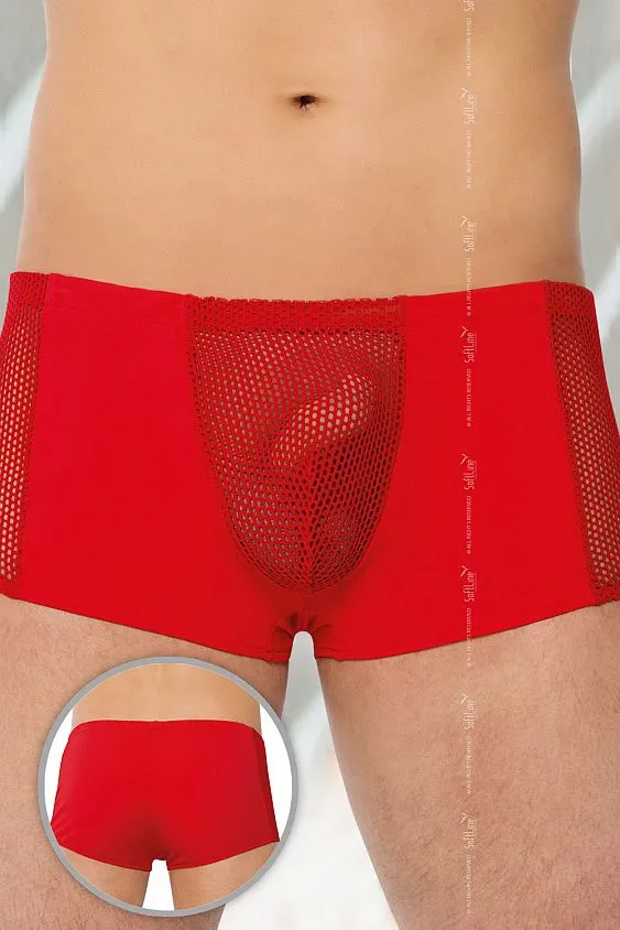 Мужские шорты, выполненные из непрозрачного эластичного материала с вставками по центру и по бокам из прозрачной сеточки.