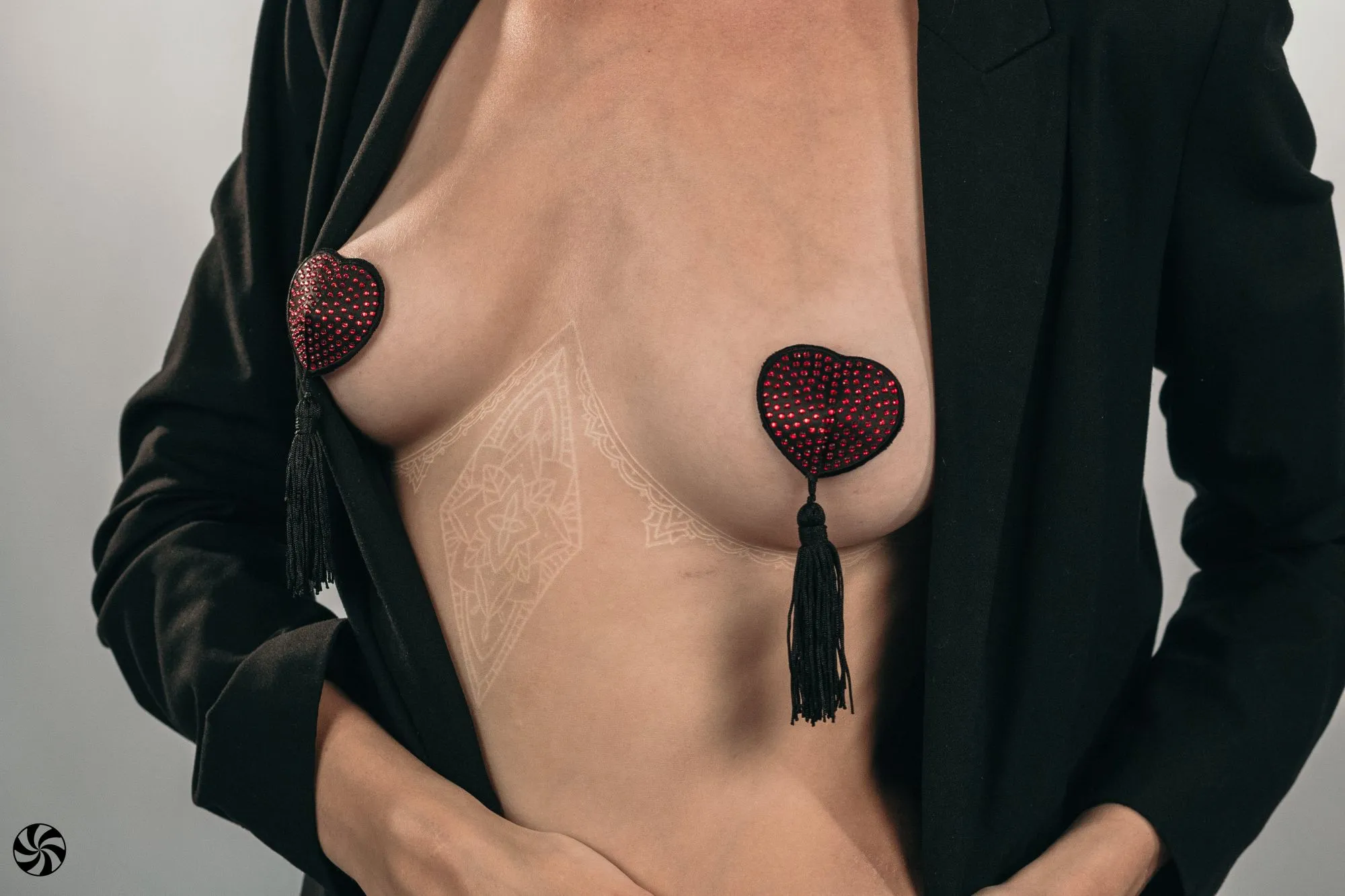 Пэстисы Evans имеют внутреннюю сторону с клейким слоем, который позволит c легкостью надеть и снять аксессуар. Пэстисы можно использовать для эротических игр или в дополнение к образу на вечеринку. Подходят для многоразового использования.