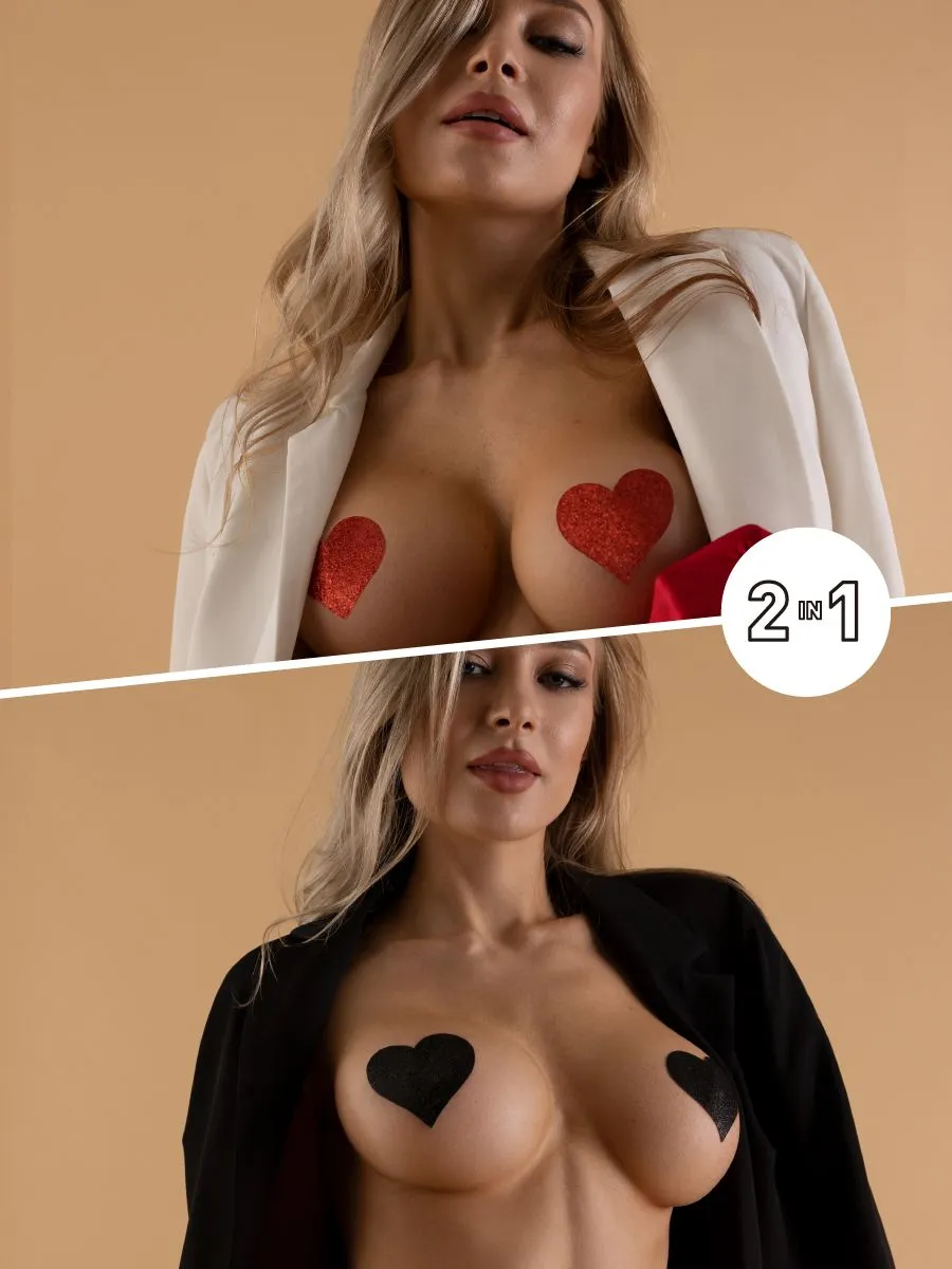 Комплект из двух пар сияющих пэстисов черного и красного цвета – подойдут под разное настроение и ситуацию. Могут быть как единственным блестящим акцентом, так и дополнить искрящийся образ – в любом случае создадут «вау» эффект. Тренд на глиттер не собирается уходить, и этот аксессуар вписывается как нельзя лучше – будь модной, играй, соблазняй!