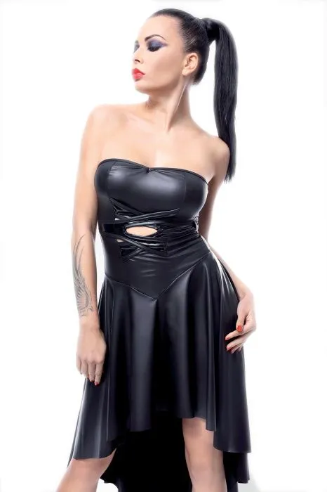 Платье Деметры. Идеально подходит для интригующих провокаций и игр в доминирование. Платье из эластичной экокожи идеально облегает фигуру. Спереди внимание привлекает эффектное декольте и интересная композиция из лакированного блестящего материала под грудью. Сзади пикантная вертикальная шнуровка и сексуальный акцент на округлости ягодиц. Платье визуально стройнит фигуру, подчеркивая изгибы бедер, ягодиц и груди. Шнуровкой можно решулировать посадку по фигуре.