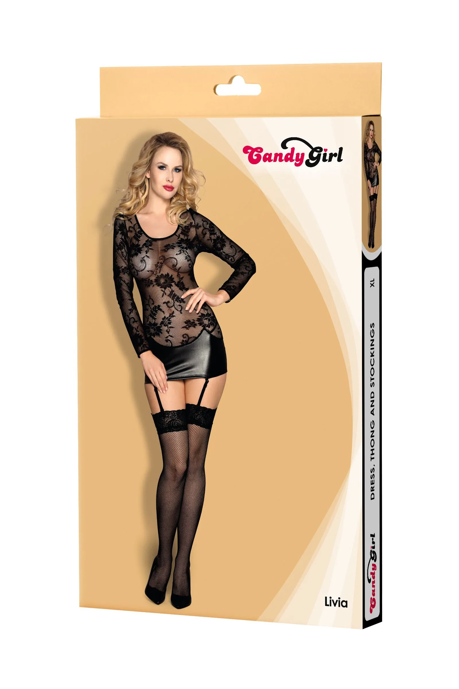 —Платье с пажами, стринги и чулки Candy Girl Livia черные, XL
