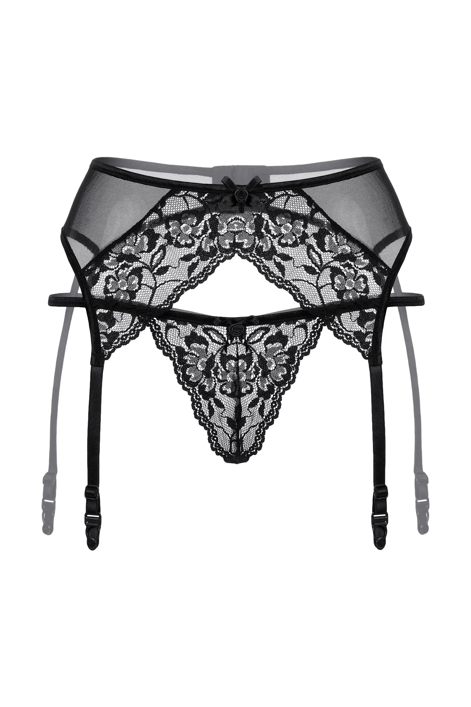 —Пояс для чулок и стринги кружевные SoftLine Collection, черный, S/M