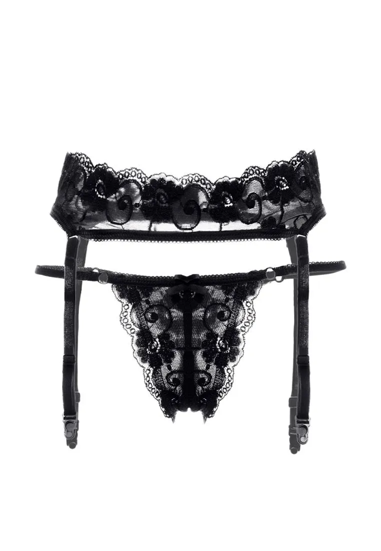 Комплект Erolanta® Tatyana: пояс для чулок и стринги кружевные, эластичные. Стринги со вставкой сеточки внутри, декорированы колечками, атласными бантиками. Пояс с ажурным верхним краем, на регулируемой застежке. *Допускается замена кружева на аналогичное. Чулки в комплект не входят. На видео комплект Erolanta® Tatyana дополнен идеально сочетающимся бралеттом Erolanta® Marisa.