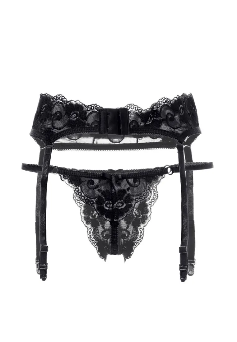 —Комплект Erolanta Tatyana: пояс для чулок и стринги, черный 46-48