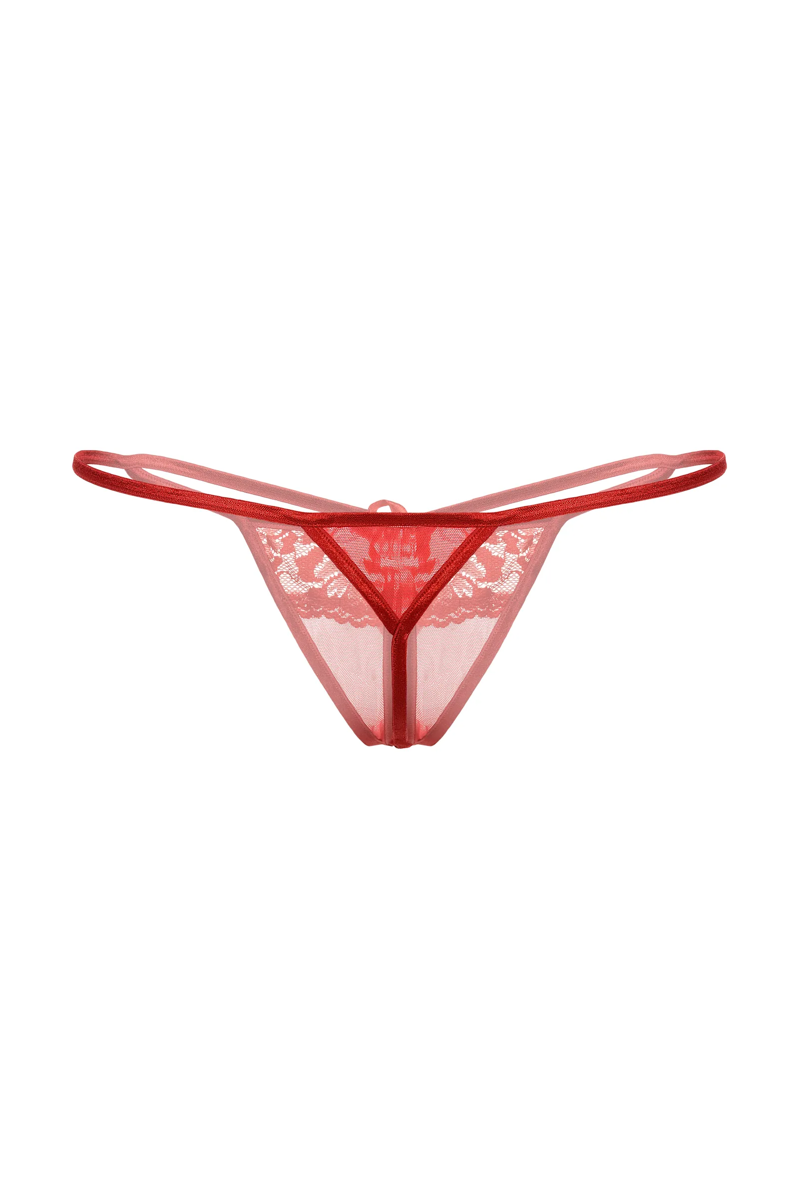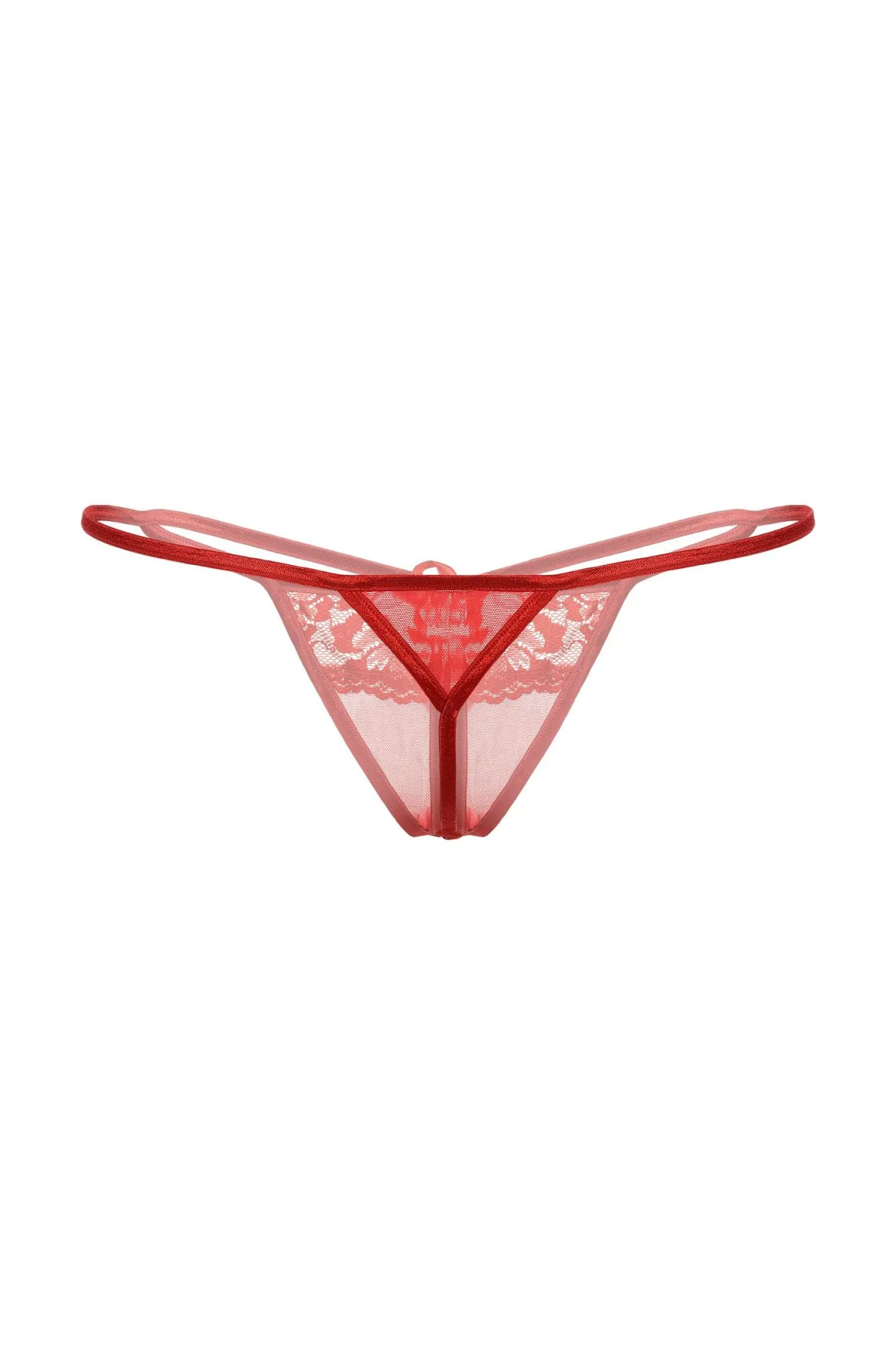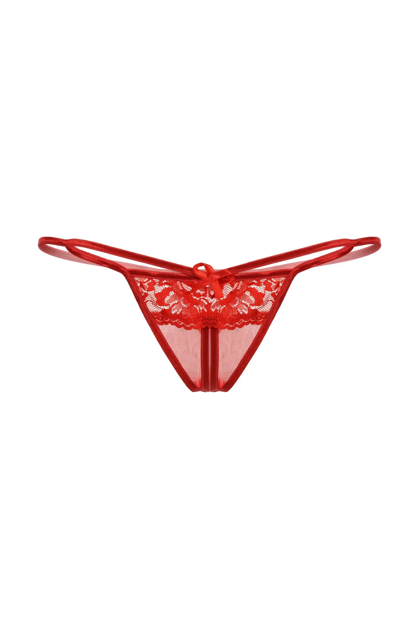 Кружевные Т-стринги с открытым доступом. Спереди декорированы кокетливым бантиком.