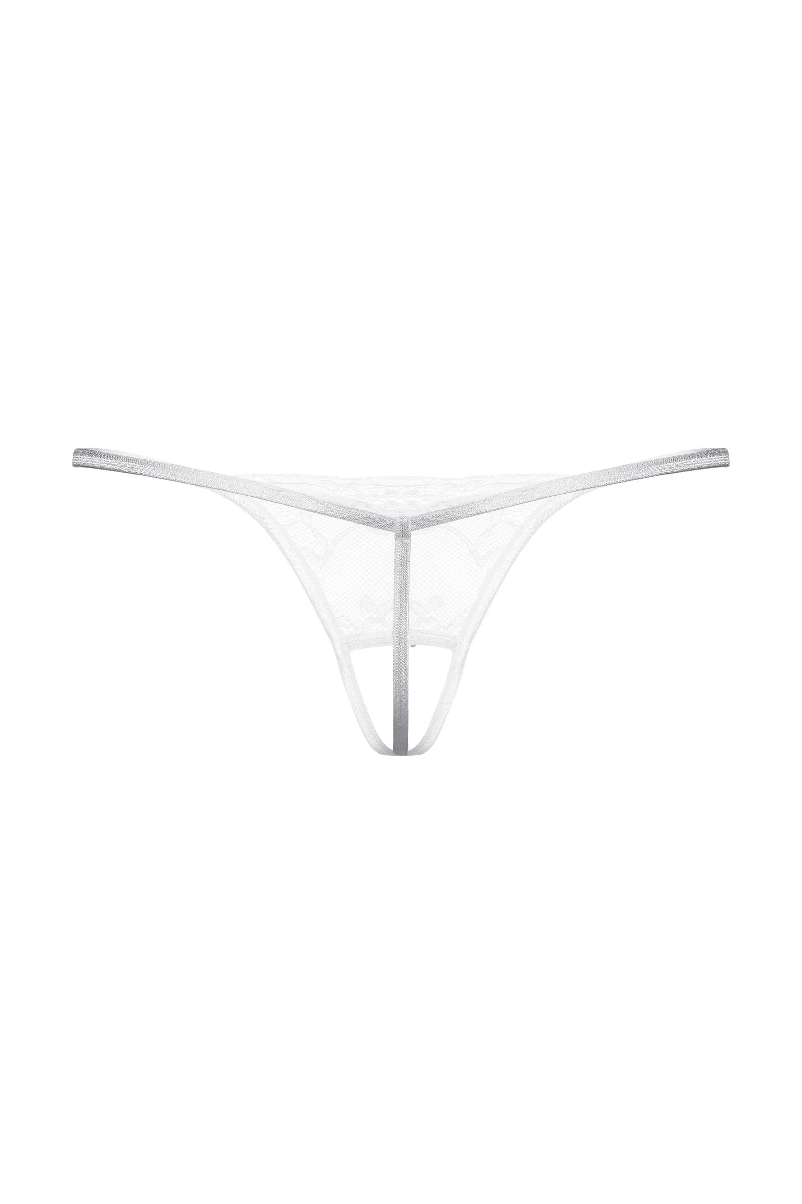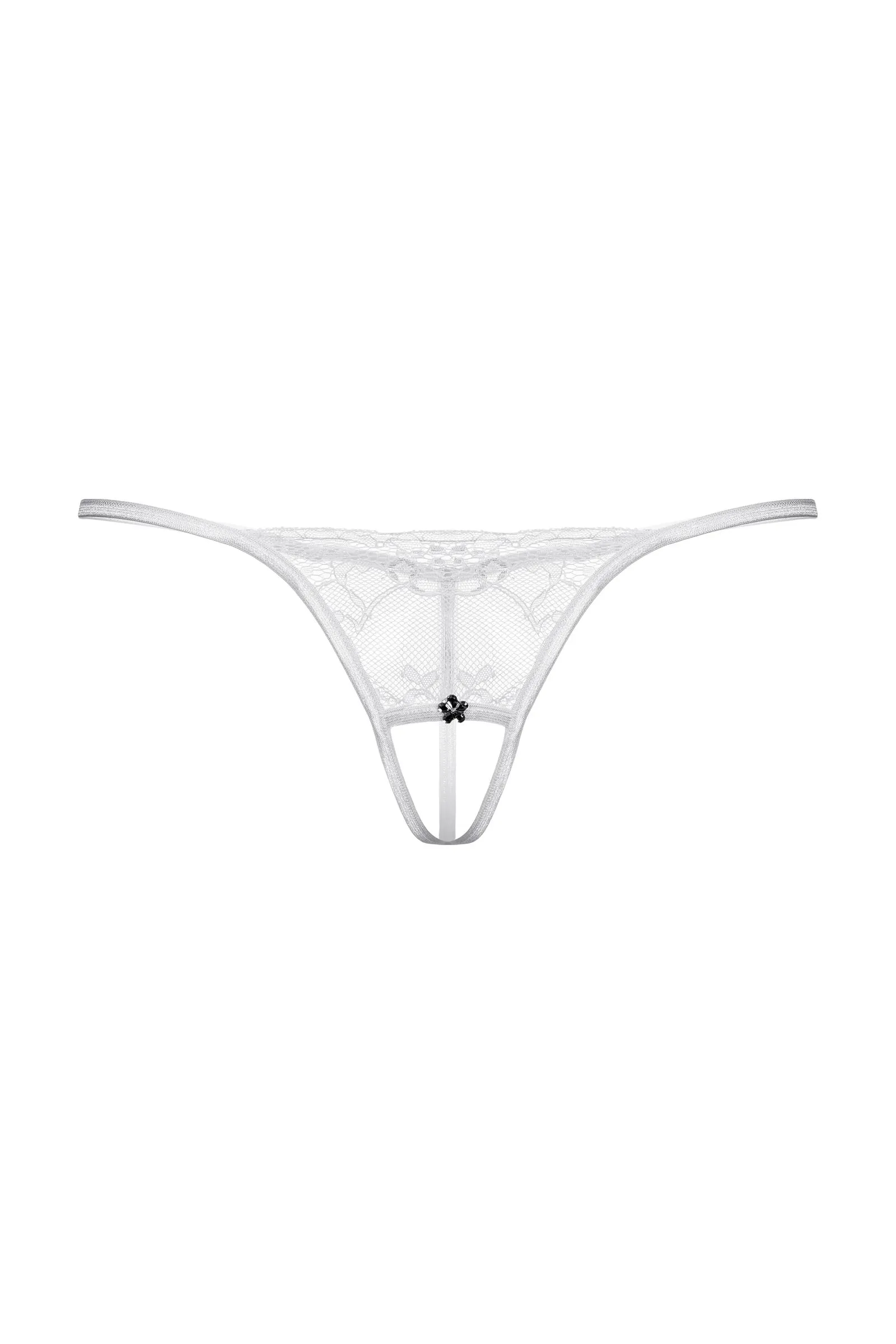 Т-стринги кружевные с открытым доступом. Спереди декорированы украшением со стразами.
