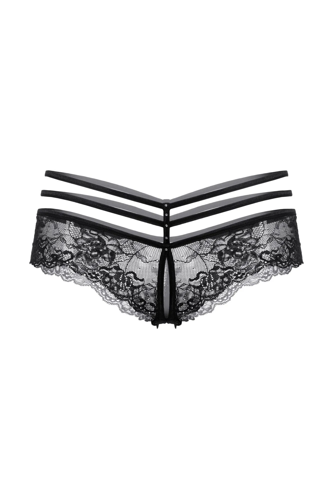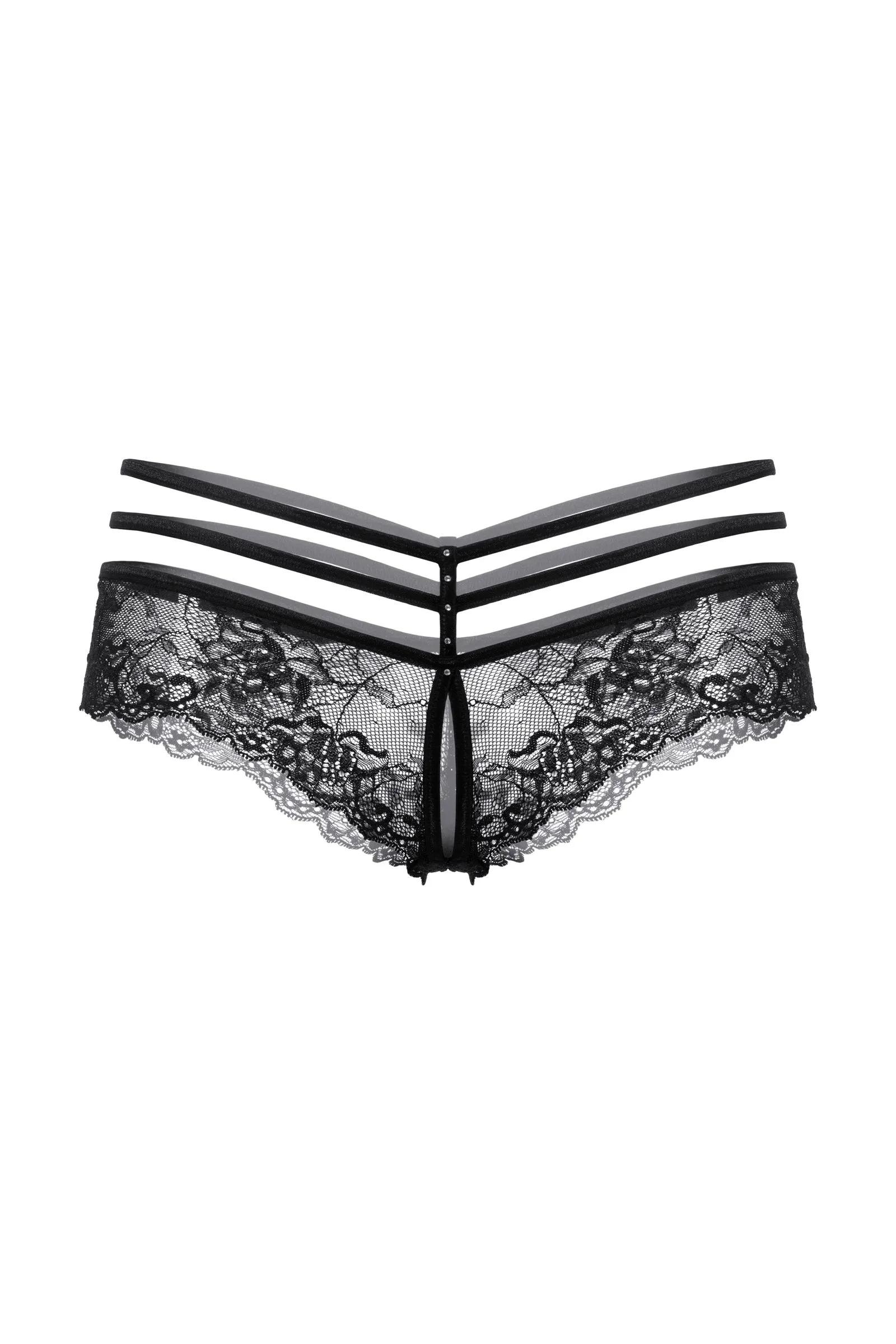 Трусики кружевные с открытым доступом выполнены из роскошного кружева. Тонкие резиночки подчеркивают соблазнительную линию бедер.