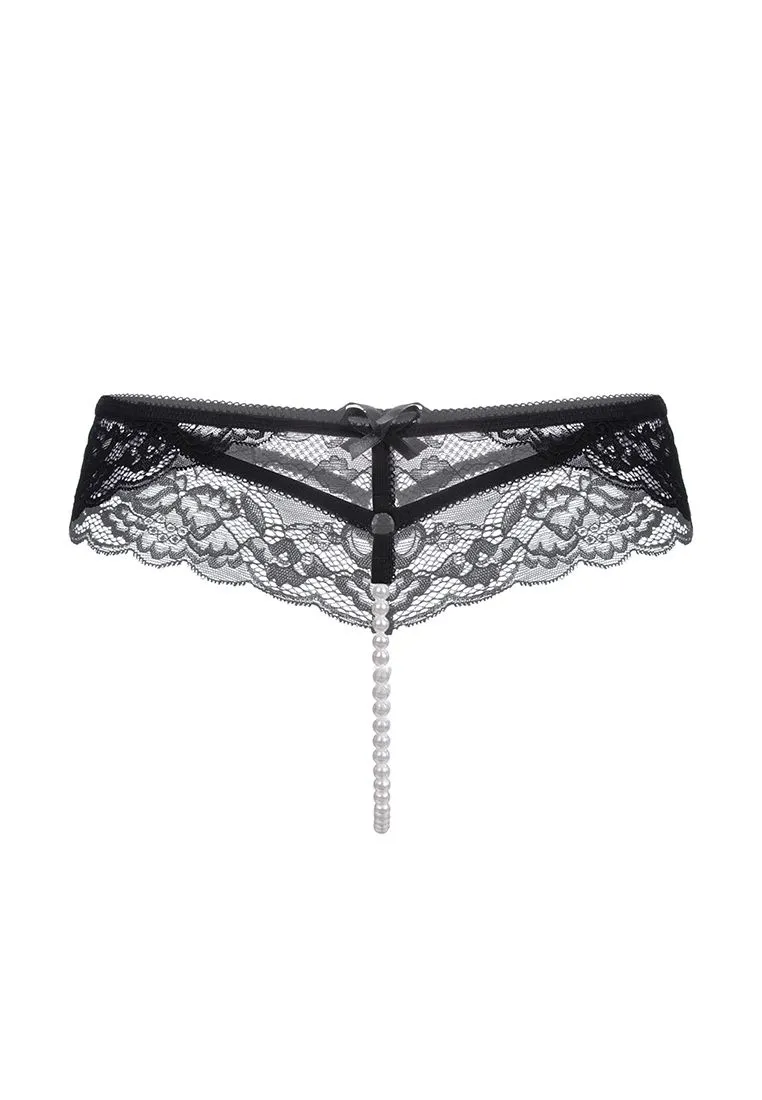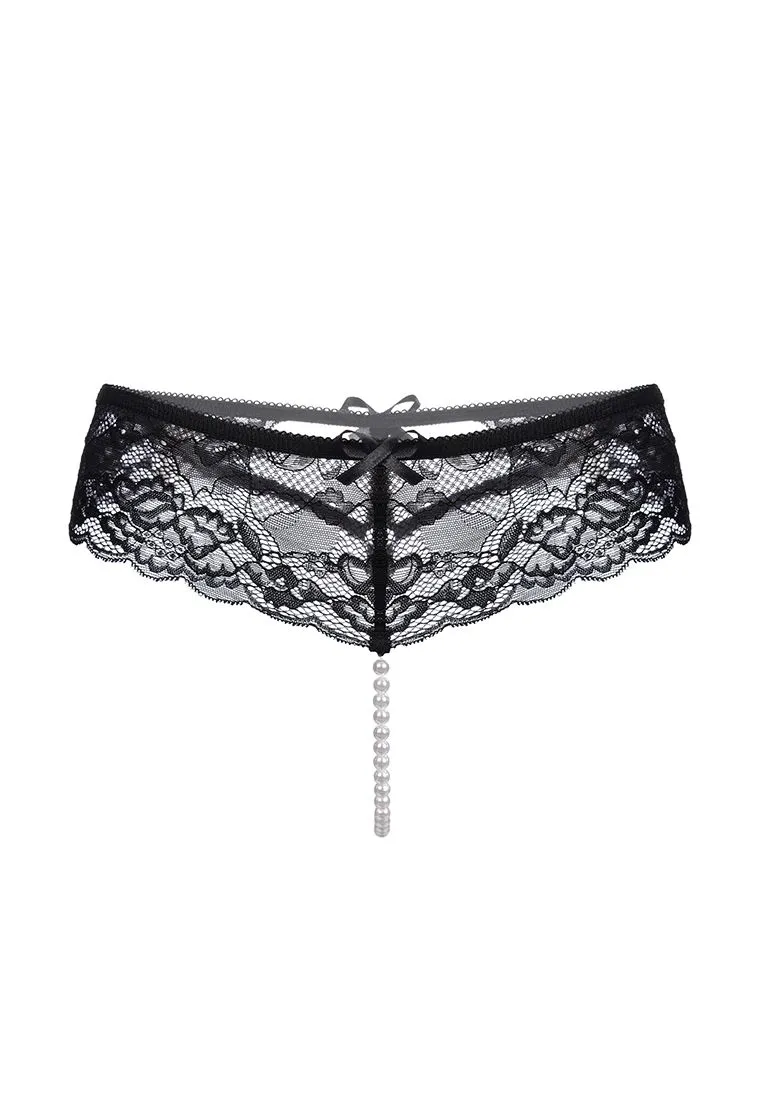 Эротические трусики с жемчужной нитью Erolanta Amy кружевные, черный 46-48