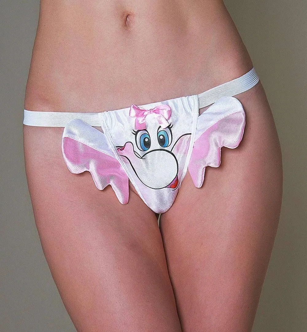 Озорные трусики-стринги от российского бренда FlirtOn выполнены в виде милого слоника из белого полиэстера и украшены атласным розовым бантиком. Широкие эластичные резинки трусиков будут комфортно прилегать к телу и не создадут дискомфорта. Обычно дизайн в виде слоника характерен для мужского нижнего белья, поэтому данная версия женских трусиков несомненно удивит Вашего партнера. Такие необычные стринги позволят Вам раскрепоститься и пошалить во время любовной игры.