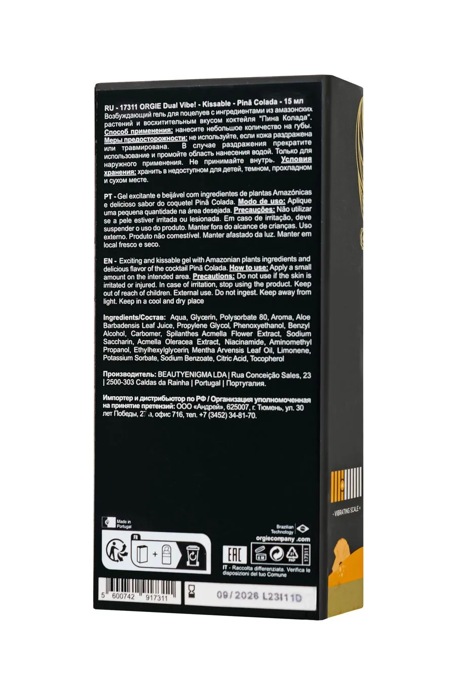 —Съедобный гель с эффектом вибрации Orgie DUAL VIBE! - KISSABLE, со вкусом пина колада, 15 мл