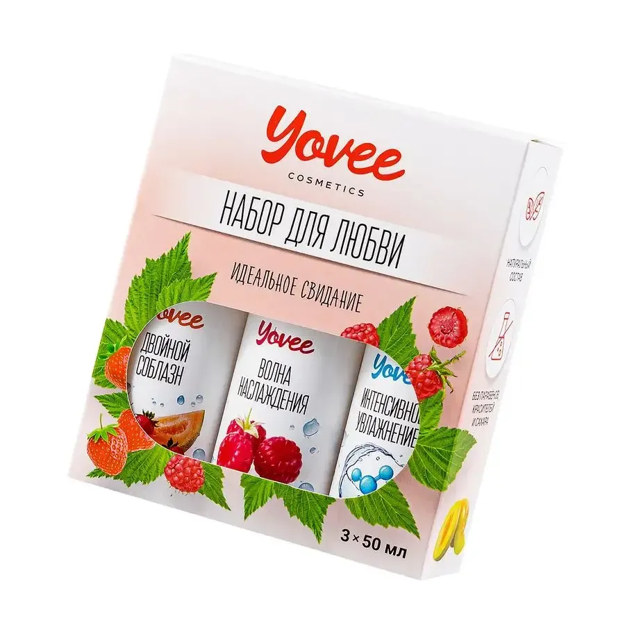 "Набор для любви" от бренда Yovee идеально подходит для эротических экспериментов. В одной упаковке три съедобных, увлажняющих геля на водной основе. Первый обладает сочным вкусом и ароматом малины, второй - соблазнительной клубники и дыни, третий - ухаживающий с гиалуроном. Используйте самостоятельно или создайте свой вкус, смешивая их! Несмотря на сладость, гели не содержат сахара в составе, не нарушают микрофлору и pH-баланс. Подходят как для вагинального, так и для орального секса. Совместимы со всеми видами презервативов и игрушек для взрослых.