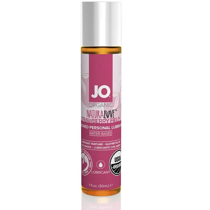 Органический лубрикант JO Naturlove USDA Strawberry fields более чем на 95% состоит из органических компонентов, качество которых подтверждено сертификатом USDA. Naturlove стимулирует процесс регенерации, защищает от потери влаги, поддерживая естественную любрикацию, питает, увлажняет. Не содержит глицерина, парабенов, подсластителей. Только природные органические компоненты. Возвращает нежность и свежесть интимной зоне. Его легкая текстура обеспечивает длительное, гладкое и шелковистое скольжение, не нарушая естественные ощущения. Скольжение достигается за счет экстракта агавы, ромашка придает янтарную окраску и служит консервантом. Нежная сладость и вкус клубничного варенья делают его приятным для оральных ласк.