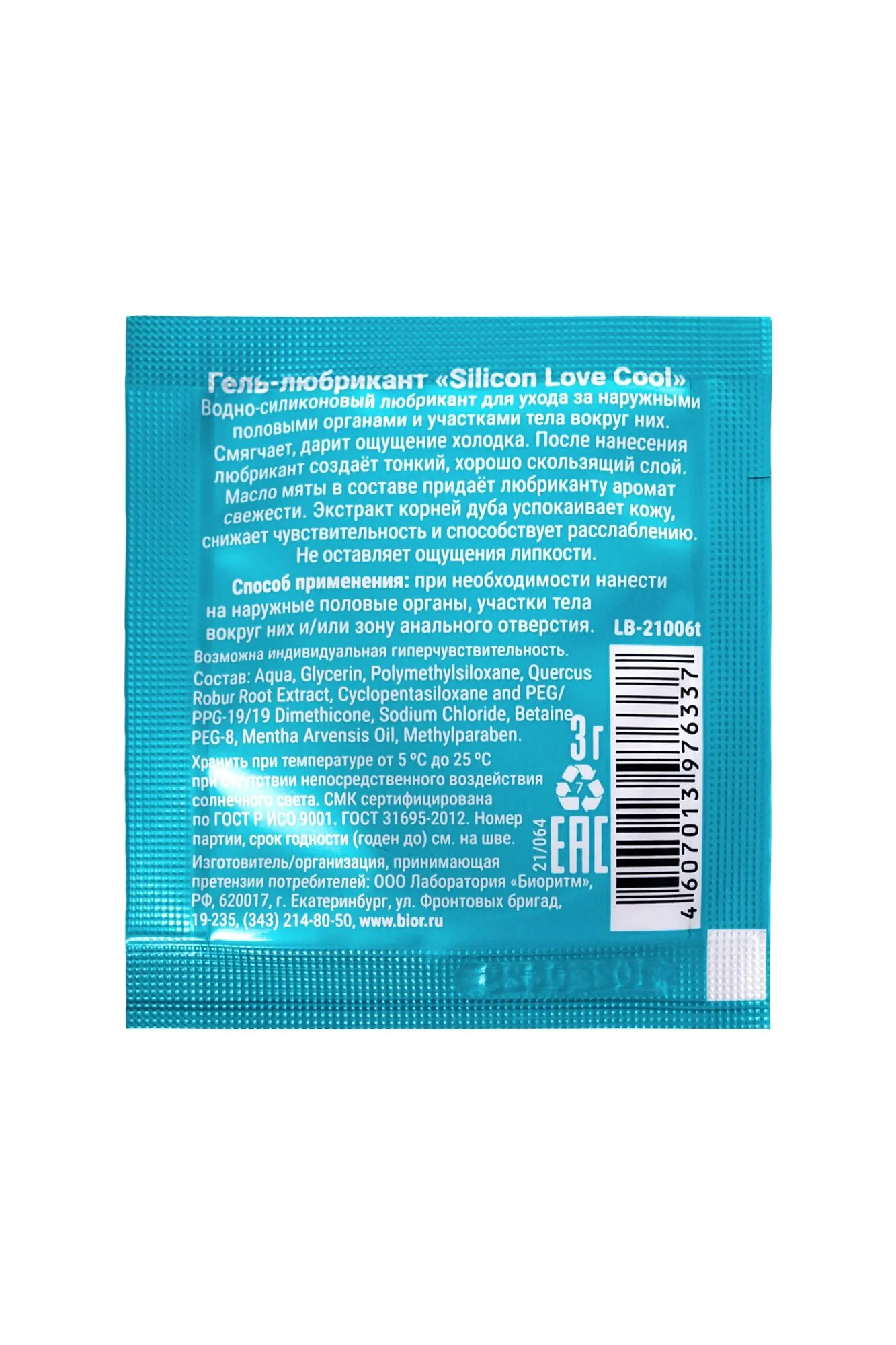 Гель-лубрикант "Silicon Love Cool" из серии ProAnal Анальный водно-силиконовый лубрикант создан для любителей особенных удовольствий! Обеспечивает нежное проникновение и длительное скольжение. Прекрасно смягчает ткани ануса, предотвращает появление микротравм. После нанесения дарит ощущение холодка. Масло мяты в составе придаёт лубриканту аромат свежести. Экстракт корней дуба успокаивает кожу, снижает чувствительность и способствует расслаблению. Гель-лубрикант не оставляет ощущения липкости. Легко смывается водой. Способ применения: при необходимости наносить на область анального отверстия.