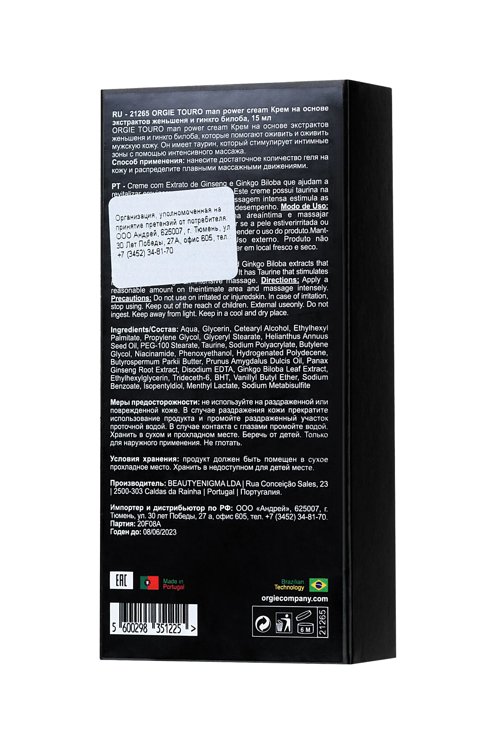 Мужской крем для тела с разогревающим эффектом Orgie Touro отлично подходит для тонизирующего спортивного и запоминающегося эротического массажа. После его применения вы ощутите мощный прилив сил. В состав Orgie Touro входят таурин и гинкго билоба — природные соединения, стимулирующие кровообращение. А также женьшень, который действует как естественный афродизиак. Все компоненты крема безопасны и не вызывают раздражения. Способ применения: нанесите достаточное количество крема на кожу. Подождите несколько минут, чтобы почувствовать разогревающий эффект.