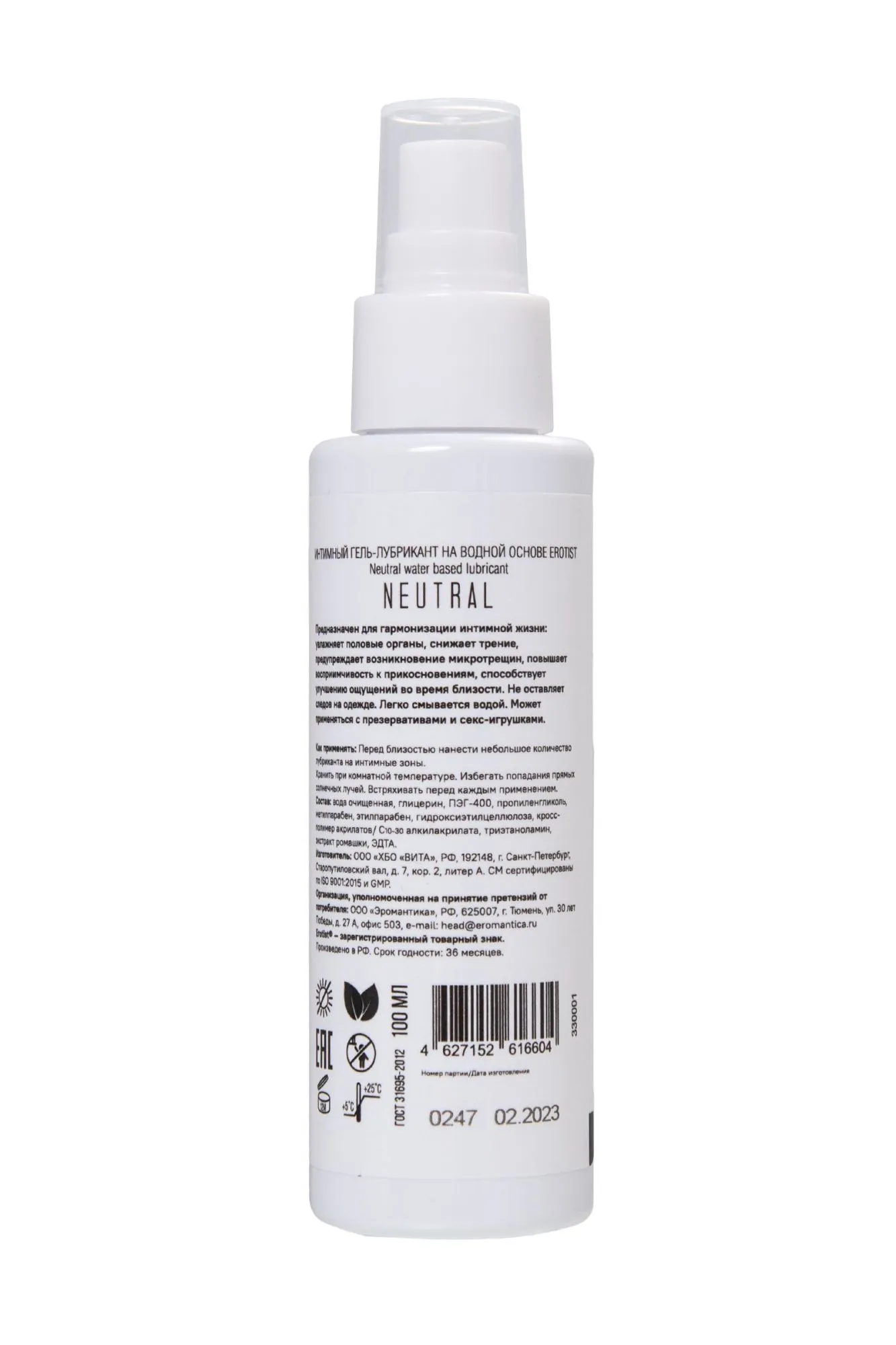 —Лубрикант Eromantica на водной основе Neutral, 100 мл