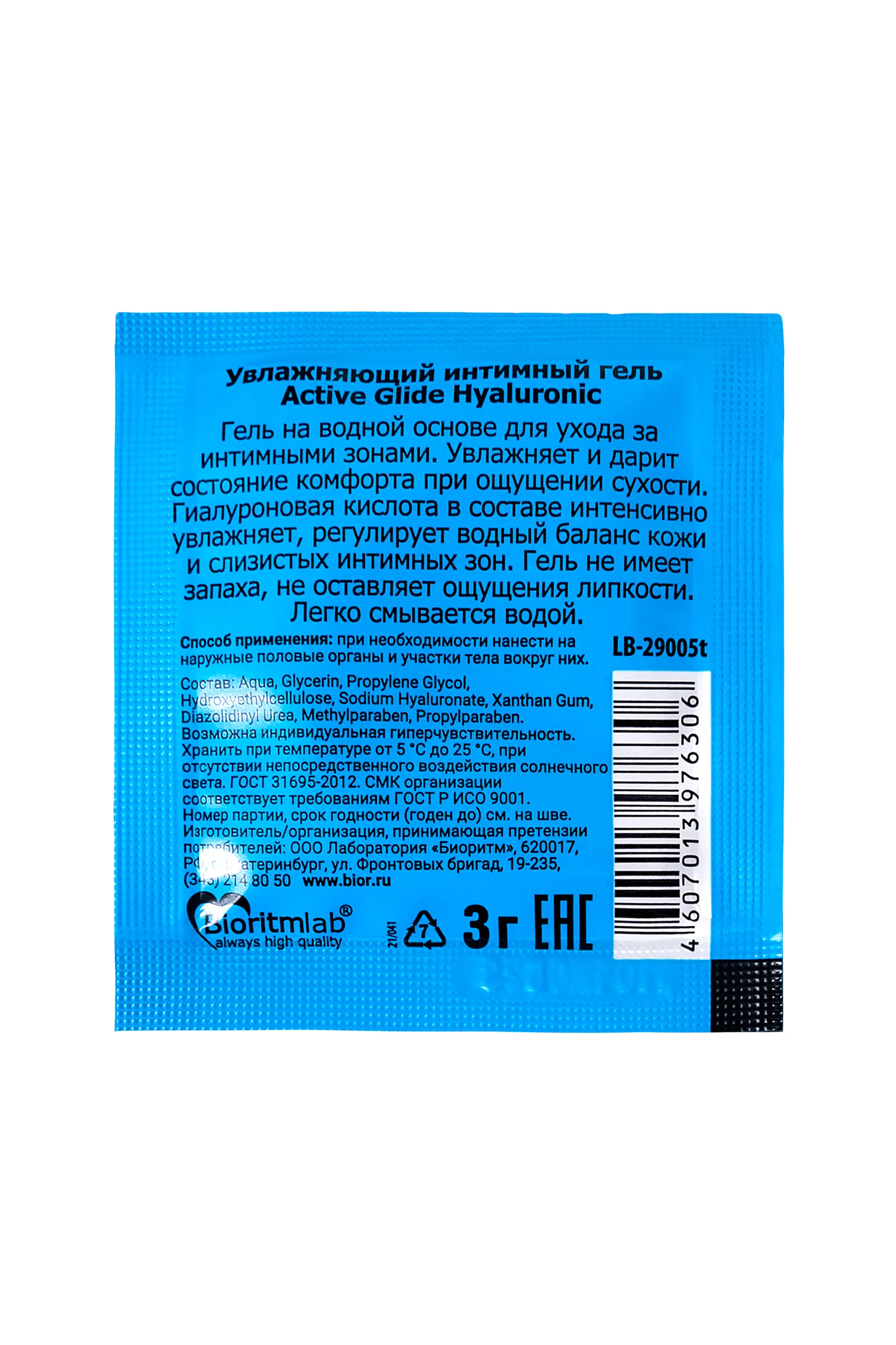 Нежный гель-любрикант на водной основе Active Glide с гиалуроновой кислотой интенсивно и длительно увлажняет и смягчает интимные зоны, устраняет сухость влагалища, восполняет недостаток женской смазки, дарит приятное продолжительное скольжение во время близости, снимает раздражения, препятствует появлению микротравм. Входящая в состав любриканта гиалуроновая кислота нормализует водный баланс клеток, способствует регенерации кожи и слизистых, обеспечивает эластичность тканей половых органов. снижает чувствительность кожи, усиливает её защитные функции. Гель-любрикант Active Glide с гиалуроновой кислотой обеспечивает бережный уход за интимными зонами женщин и мужчин. Не имеет цвета и запаха, легко смывается водой.
