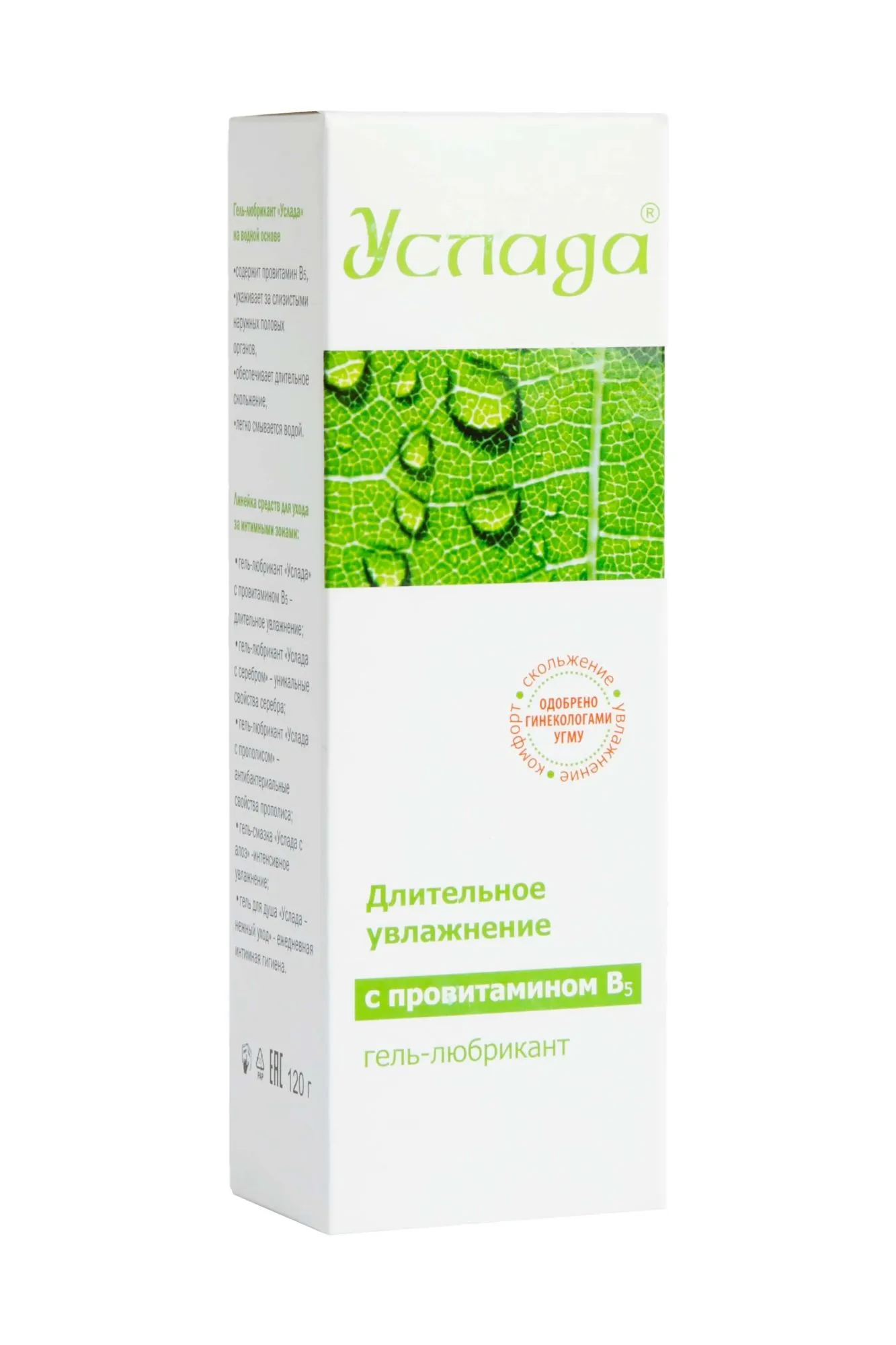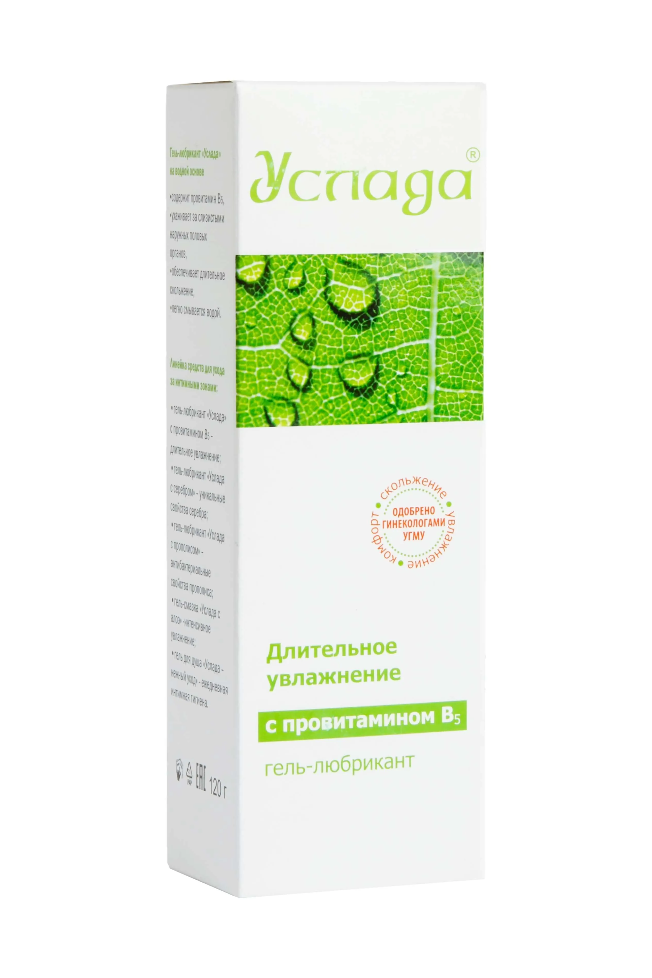 Увлажняющий гель Услада рекомендуется при сухости влагалища, так как он усиленно регенерирует и увлажняет слизистые половых органов. Безжировая смазка на водной основе не имеет вкуса и запаха. Имитирует естественную смазку и обеспечивает длительное скольжение во время интимной близости. Провитамин В5, содержащийся в средстве, обладает заживляющим и питательным свойством.