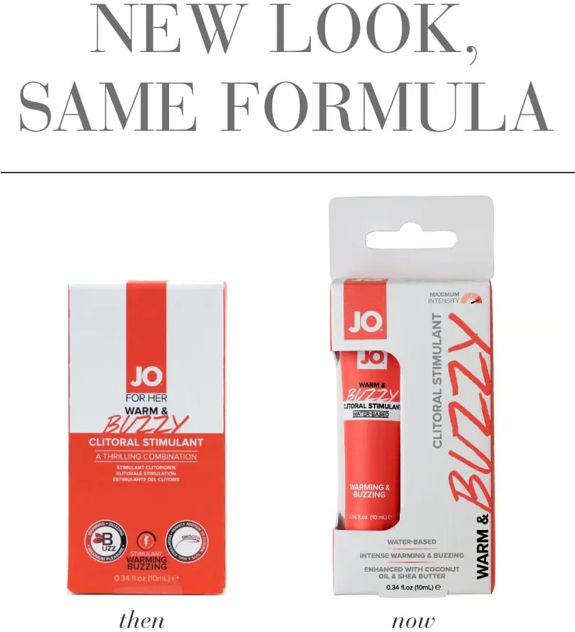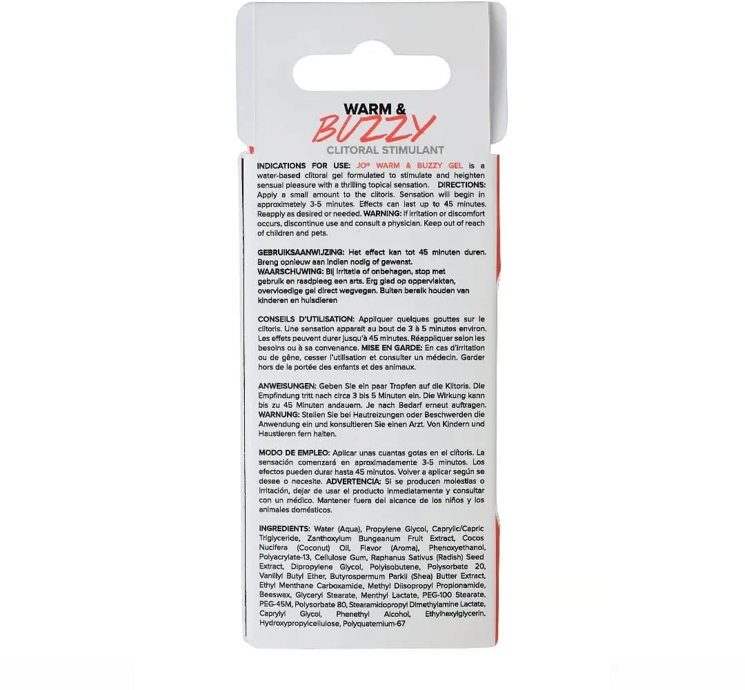 JO WARM & BUZZY - это клиторальный крем на водной основе, который подарит вам поистине необычные ощущения! Наслаждайтесь возбуждающими мурашками охлаждающего эффекта, переходящими в мягкое покалывание, которое переходит в пробуждающее тепло и достигает своего пика в захватывающем эффекте вибрации. Средство на водной основе можно легко смыть и при желании прервать стимуляцию.