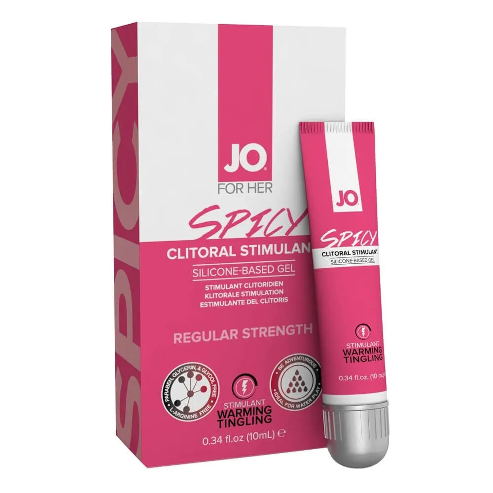Гель для клитора JO Spicy, созданный специально для повышения женского возбуждения, вызывает эффект легкого покалывания и нарастающего тепла. С ним Вы сможете получить гораздо больше волнительных ощущений во время интимной близости с партнером. Он сделан на силиконовой основе, поэтому использовать его можно даже в воде.