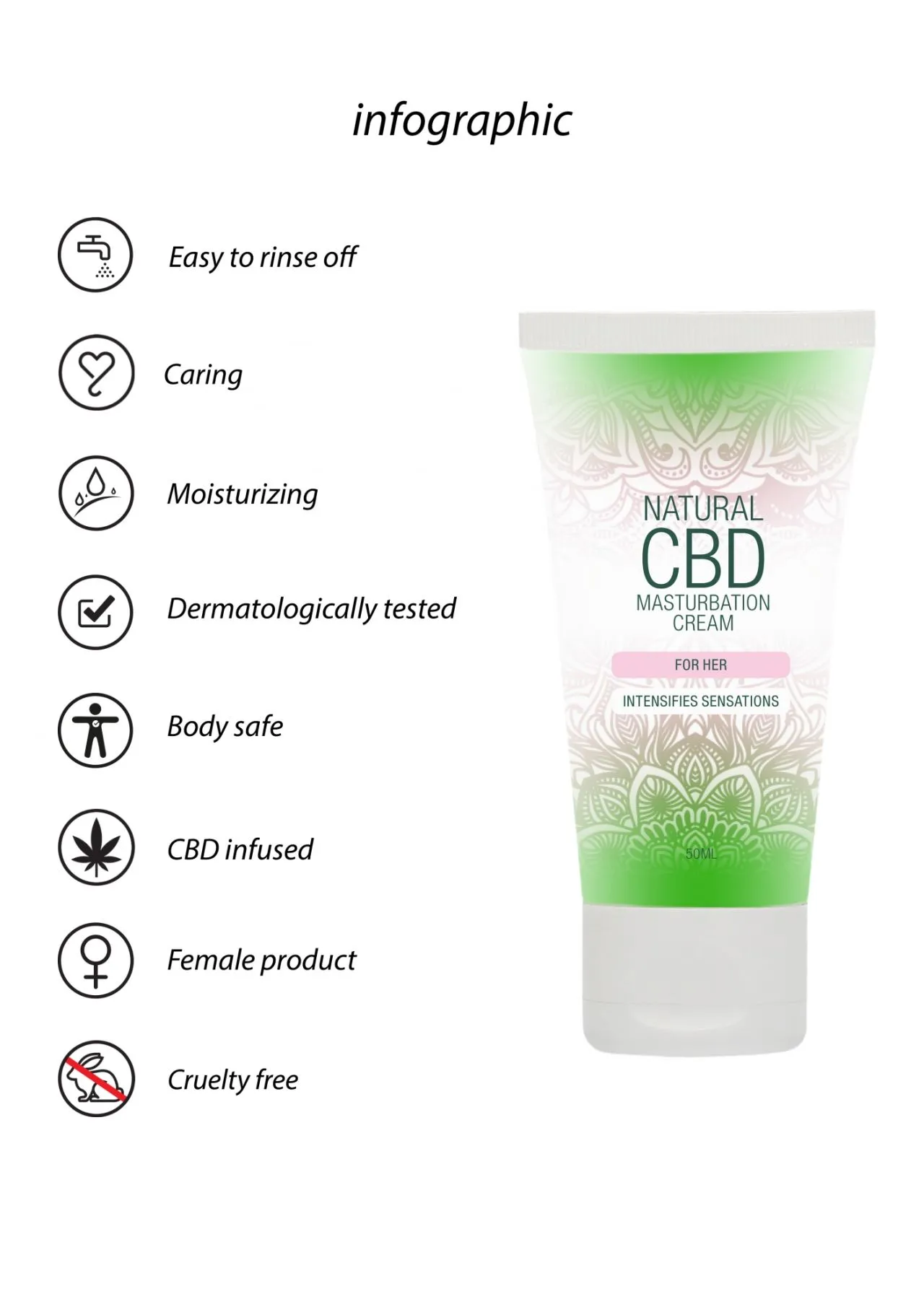 Крем для мастурбации для Неё Natural CBD содержит активный ингредиент CBD (каннабидиол). Крем интенсивно увлажняет кожу и обеспечивает длительное скольжение.