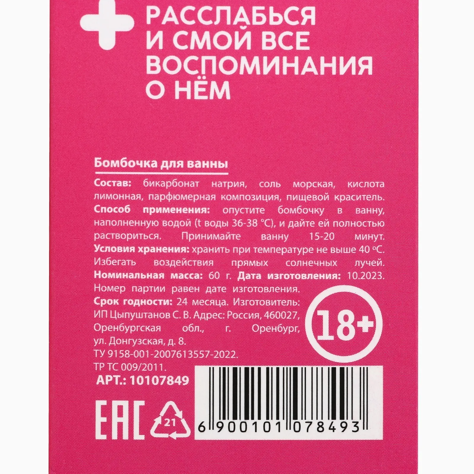 Бомбочка для ванны «Анафигон» от бренда "Чистое счастье" - это не просто средство для расслабления и ухода за кожей, но и отличный подарок для взрослых женщин. Продукт имеет розовый цвет и аромат клубники со сливками. Это не просто приятный запах, но и источник наслаждения для вашей кожи. Бомбочка для ванны «Анафигон» имеет вес 60 грамм, что делает ее достаточно большой для одного использования. Упаковка товара выполнена в виде термоусадочной пленки, что обеспечивает сохранность продукта во время транспортировки и хранения. Продукт предназначен для взрослых женщин и имеет возрастные ограничения 18+. Продукт имеет температурный режим от +5 до +25 градусов Цельсия, что позволяет использовать его в любое время года. В целом, бомбочка для ванны «Анафигон» - это не только приятный и полезный подарок, но и возможность подарить себе и близким минуты истинного наслаждения и релаксации.