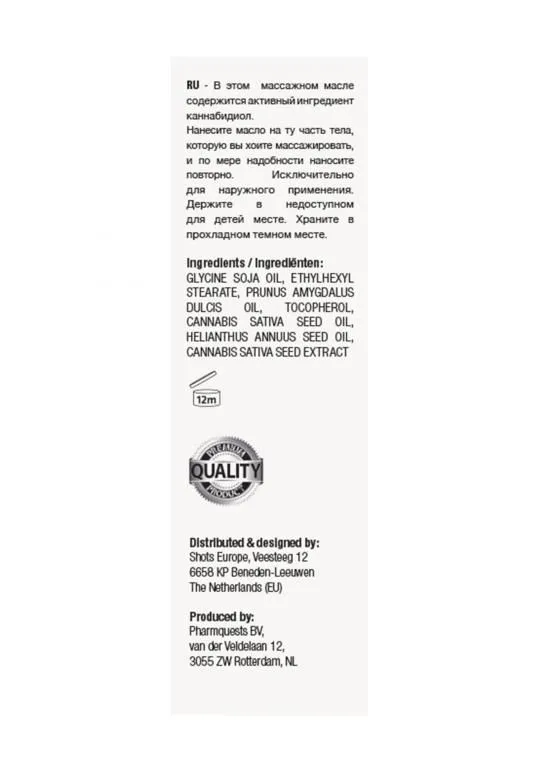 Это массажное масло в виде спрея содержит активный ингредиент CBD (каннабидол).