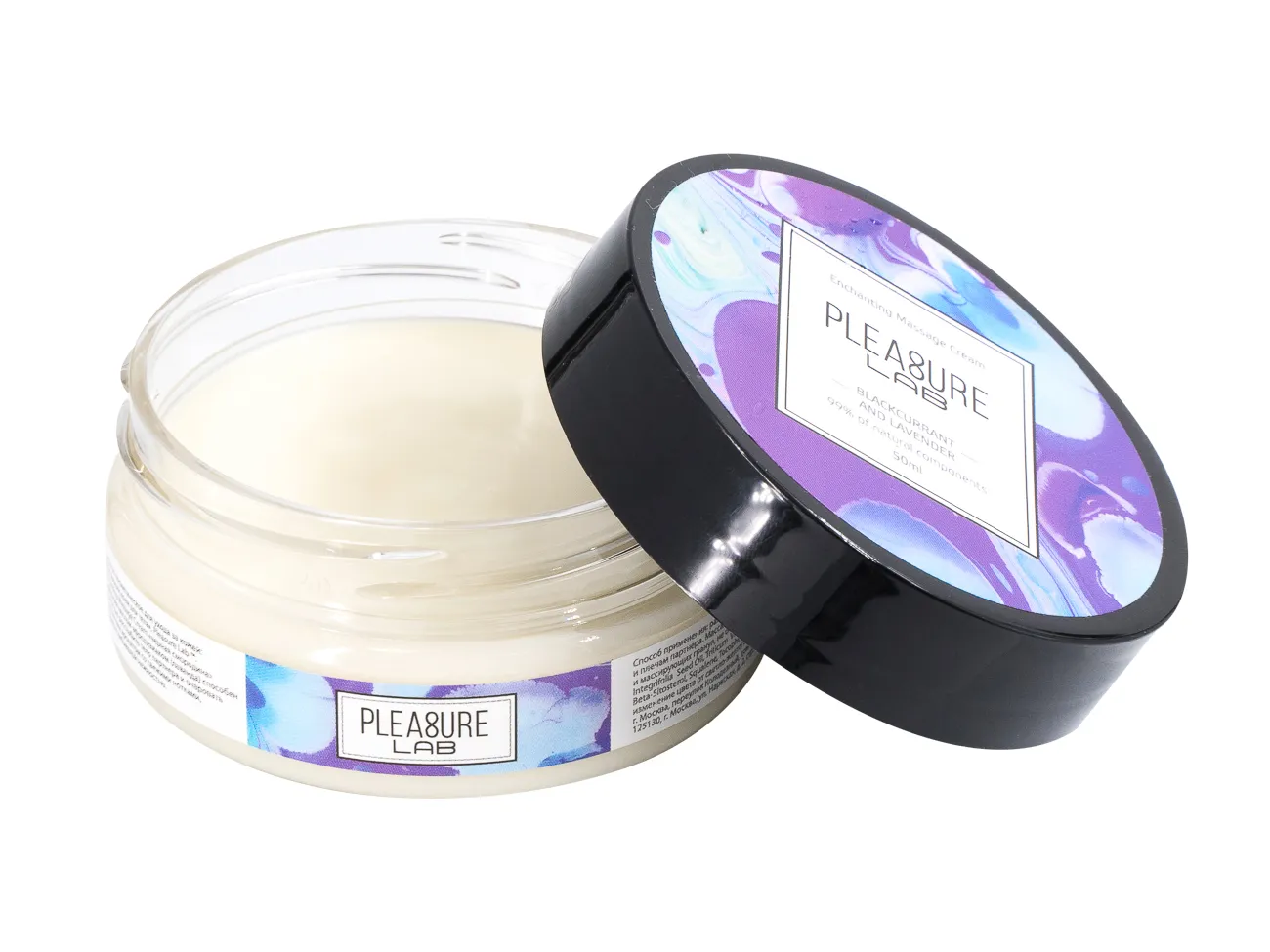 Pleasure Lab Enchanting с ароматом черной смородины и эфирным маслом-афродизиаком лаванда способен полностью расслабить тело партнера и очаровать изысканным ароматом со свежими нотками, одаривая небывалой нежностью. Способ применения: разотрите небольшое количество крема в ладонях и медленно начните продвигаться массирующими движениями от ступней к спине и плечам партнера. Массажный крем подходит для самомассажа, а также выравнивает и увлажняет рельеф кожного покрова за счет специальных активных ингредиентов и массирующих гранул, не оставляя маслянистой пленки.  Состав: масло ши (карите), масло кокосовое, масло оливковое, масло макадамии, масло зародышей пшеницы, парфюмерная композиция, эфирное масло лаванды, СК-СО2 экстракты (розмарин, плоды черной смородины), натуральный антиоксидант (токоферол (смесь), бета-ситостерол, сквален), витамин Е. Срок годности- 2 года.