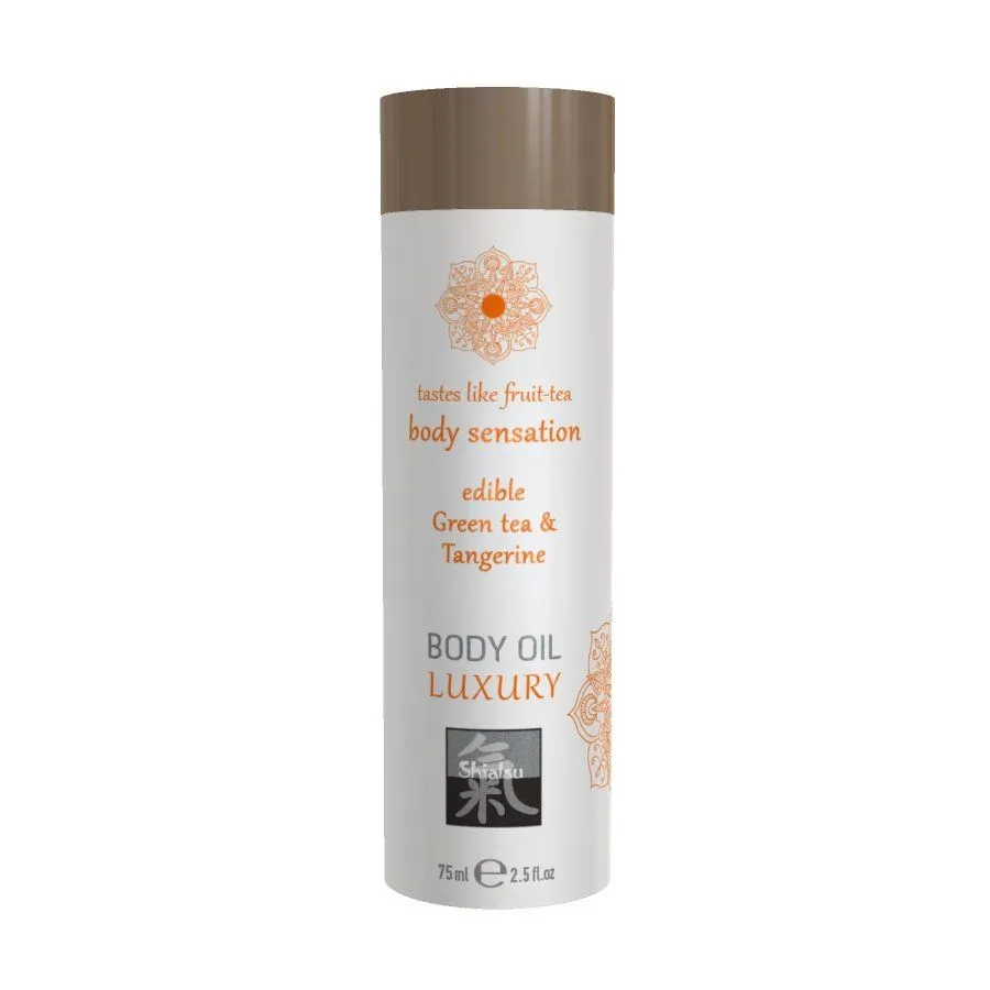 Ароматное съедобное масло от бренда Shiatsu обладает насыщенным вкусом зеленого чая и мандарина, освежающий аромат которого возбудит Ваши чувства до предела. Нанесите масло на тело партнера во время сеанса массажа, а затем попробуйте его на вкус, уделяя особое внимание эрогенным зонам. Оно будет ухаживать за кожей, делая ее мягкой и шелковистой, а его нежная обволакивающая текстура подарит незабываемые ощущения.