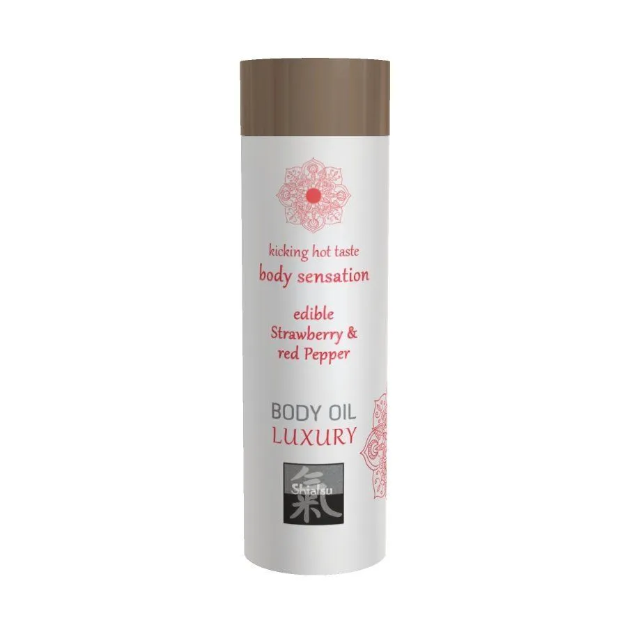 Ароматное съедобное масло от бренда Shiatsu обладает насыщенным вкусом клубники и красного перца, необычный аромат которого возбудит Ваши чувства до предела. Нанесите масло на тело партнера во время сеанса массажа, а затем попробуйте его на вкус, уделяя особое внимание эрогенным зонам. Оно будет ухаживать за кожей, делая ее мягкой и шелковистой, а его нежная обволакивающая текстура подарит незабываемые ощущения.
