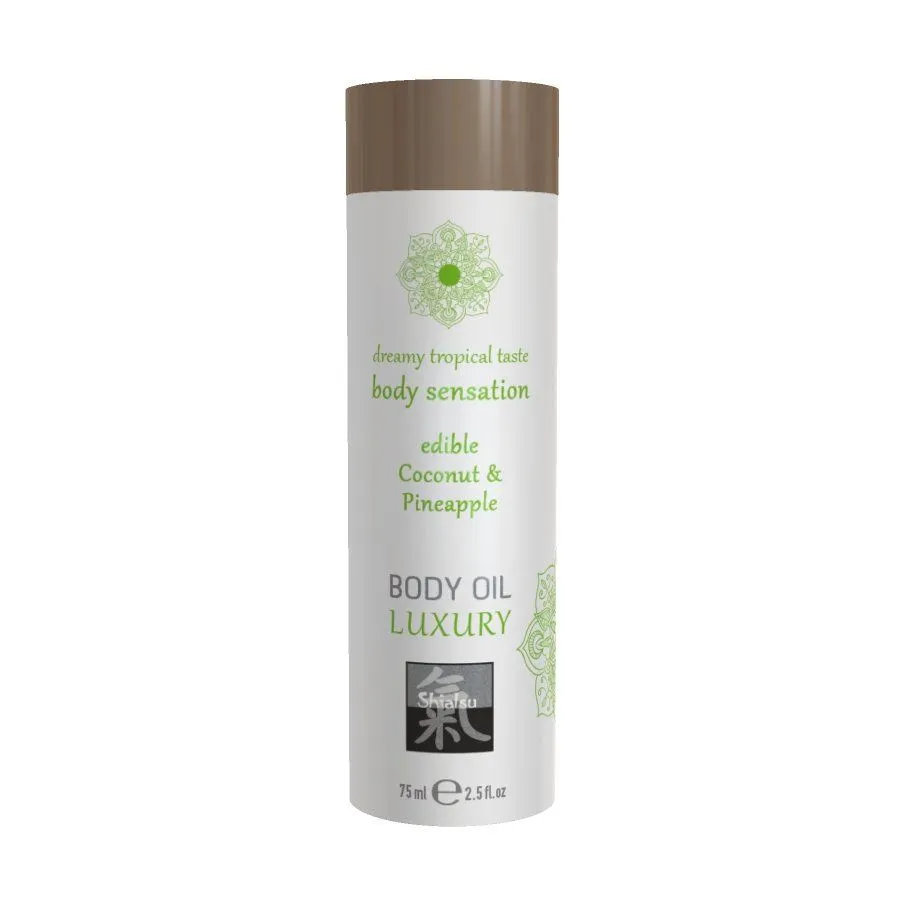 Ароматное съедобное масло от бренда Shiatsu обладает насыщенным вкусом кокоса и ананаса, тропический аромат которого возбудит Ваши чувства до предела. Нанесите масло на тело партнера во время сеанса массажа, а затем попробуйте его на вкус, уделяя особое внимание эрогенным зонам. Оно будет ухаживать за кожей, делая ее мягкой и шелковистой, а его нежная обволакивающая текстура подарит незабываемые ощущения.