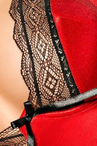 Элегантное боди Ines от бренда Lapin Rose выполнено из эластичного красного материала, напоминающего атлас, и декорировано тонким итальянским кружевом черного цвета и пикантным бантиком. Наряд будет облегать фигуру, акцентируя внимание на Ваших соблазнительных формах и манящих изгибах тела. Эта модель выглядит одновременно стильно и сексуально, поэтому в ней Вы будете чувствовать себя необычайно желанной и неотразимой.