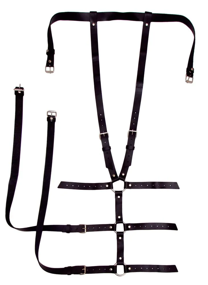 Портупея выполнена из кожи черного цвета. Благодаря наличию регулируемых ремней с пряжками Вы сможете подогнать ее по своей фигуре.