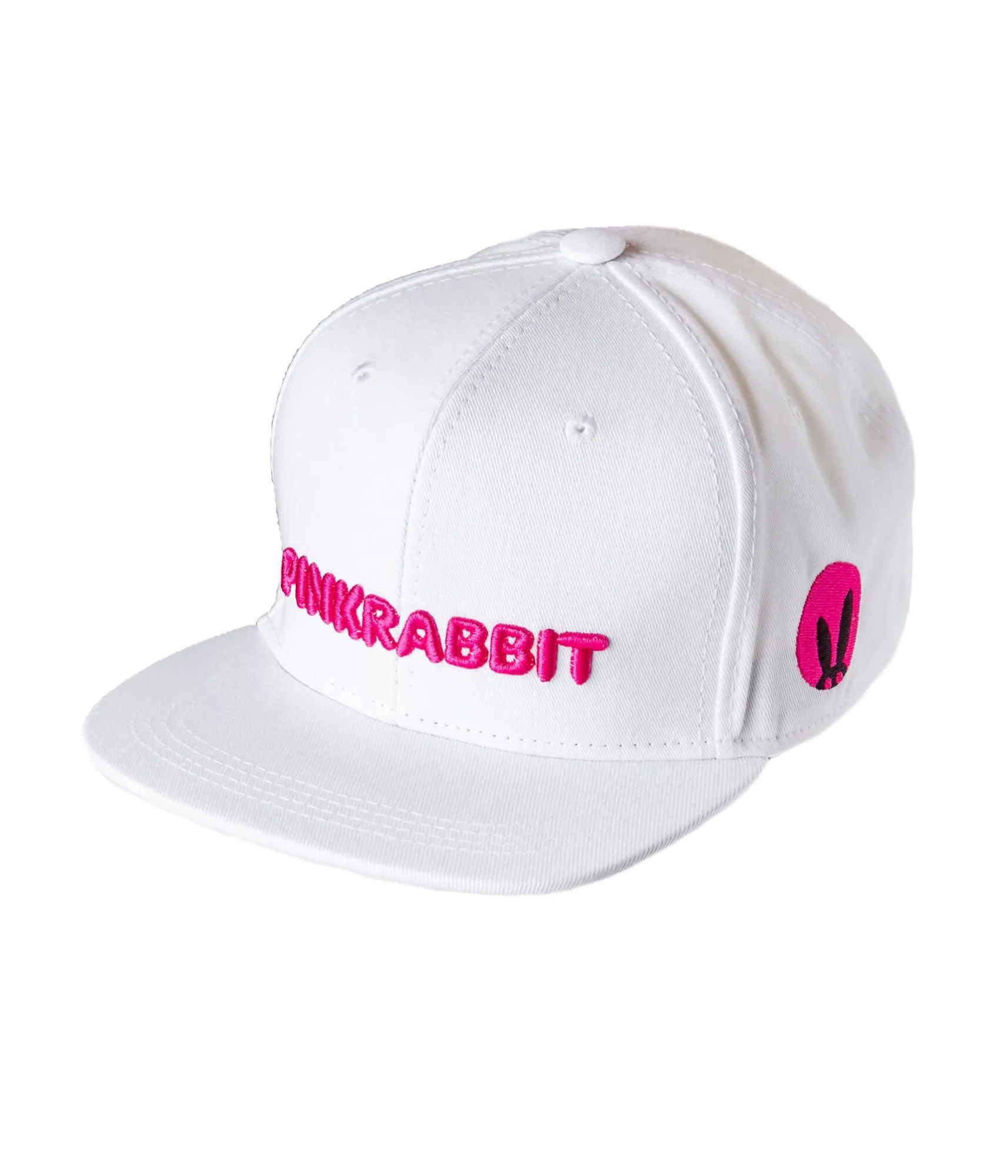 • бейсболка белого цвета с вышитым названием бренда "Pink Rabbit"
