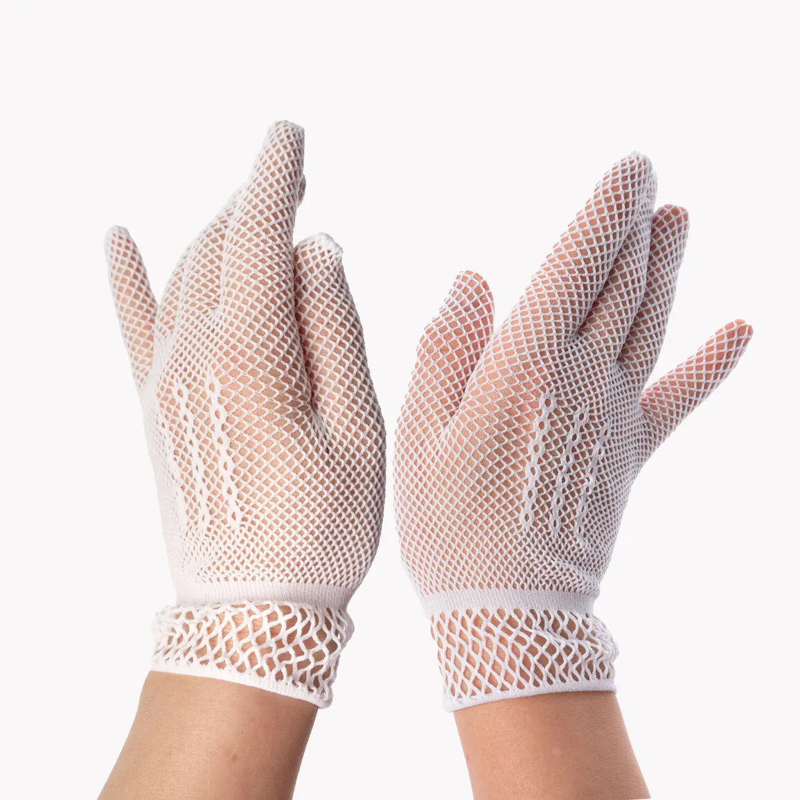 —Сетчатые перчатки белого цвета