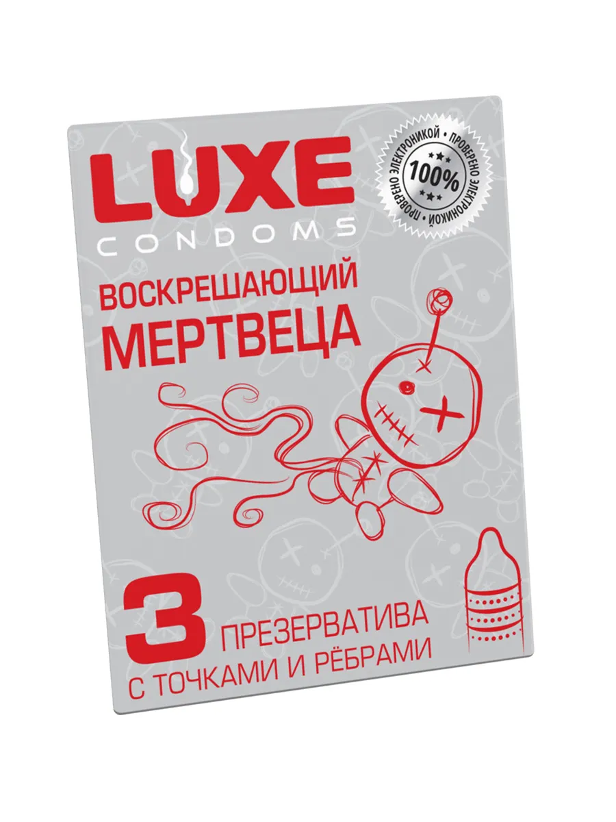 Удивите партнера и порадуйте себя новыми ощущениями! Качественное удовольствие с презервативами LUXE Воскрешающий мертвеца – название говорит само за себя. Три латексных презерватива с накопителем и смазкой в яркой фирменной упаковке. Рельеф с ребрами и точками для наивысшего наслаждения и дополнительной стимуляции. Наслаждаться процессом, не беспокоясь о безопасности, легко с презервативами LUXE Воскрешающий мертвеца. Необычная упаковка с креативным дизайном и многообещающим названием также призвана сделать вашу близость незабываемой. Качественный латекс Силиконовая смазка Рельефная текстура – точки и ребра Протестировано электроникой Креативная упаковка “конверт” Длина 180 мм Ширина 52 мм Толщина стенок 0,06 мм Количество в упаковке – 3 шт