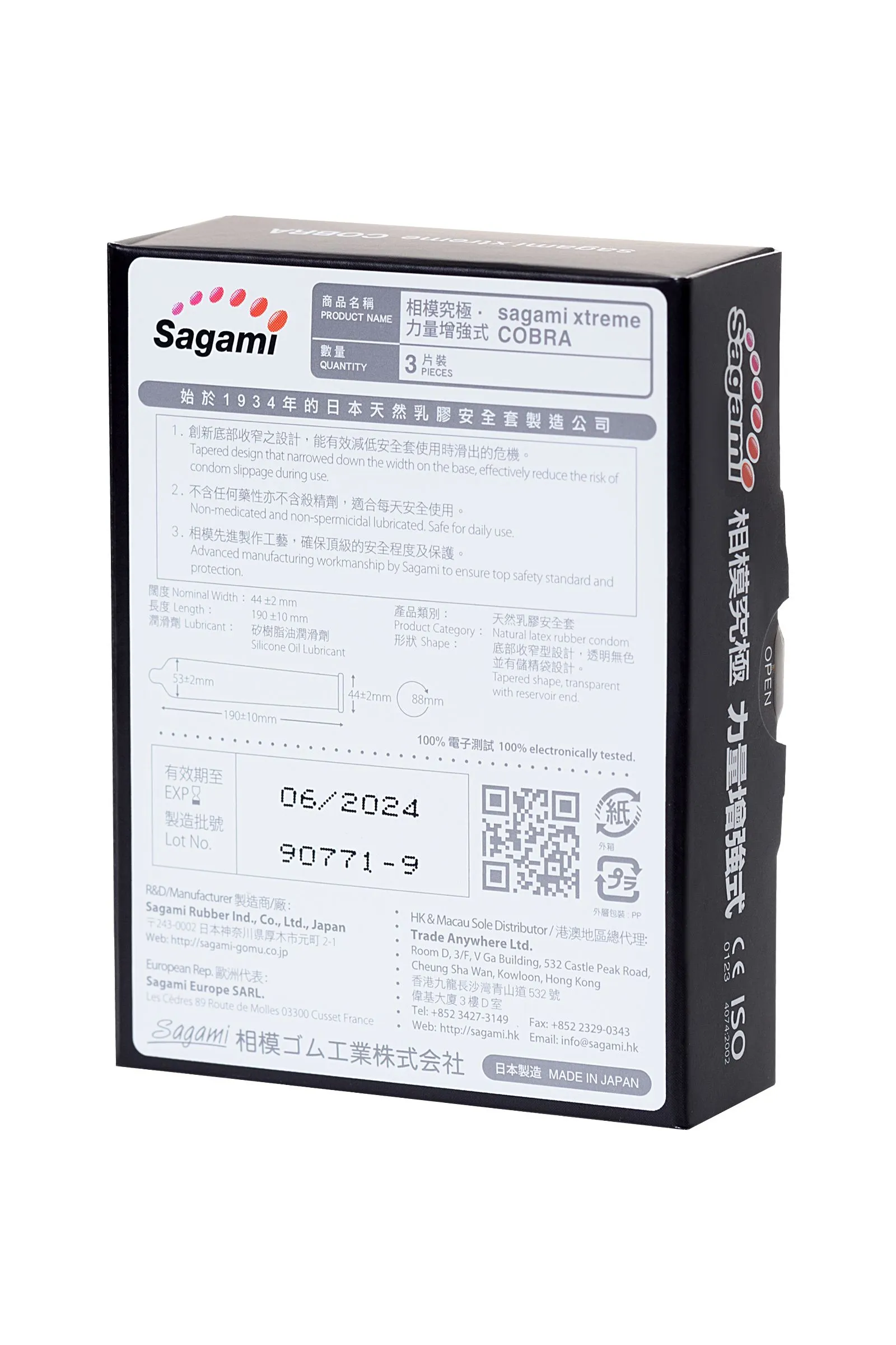 С Sagami Xtreme Cobra вы навсегда забудете о раздражающем сползании презерватива. Его расширенная верхняя часть и сильное сужение у основания обеспечивают такое плотное прилегание к члену, что вы без труда сможете наслаждаться даже долгими секс-марафонами. Гладкая текстура и силиконовая смазка дарят приятное длительное скольжение, оберегая нежную кожу партнерши от микротравм. Высочайшее качество латекса гарантирует надежную защиту. Японские латексные презервативы Sagami Xtreme Cobra — желанный уровень комфорта во время близости.