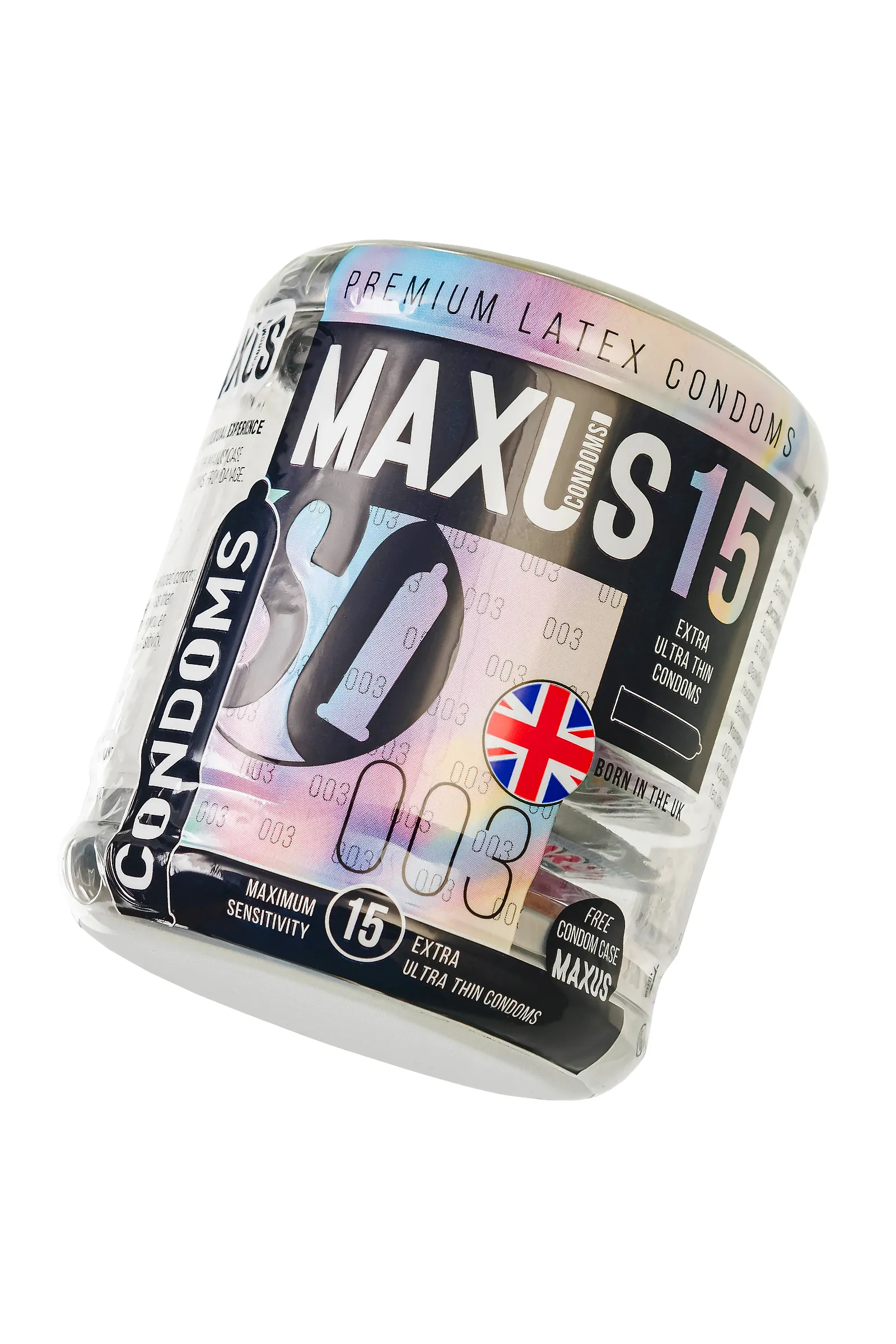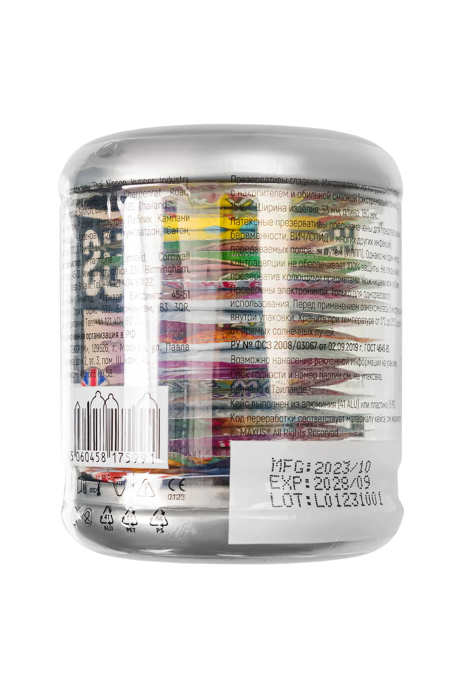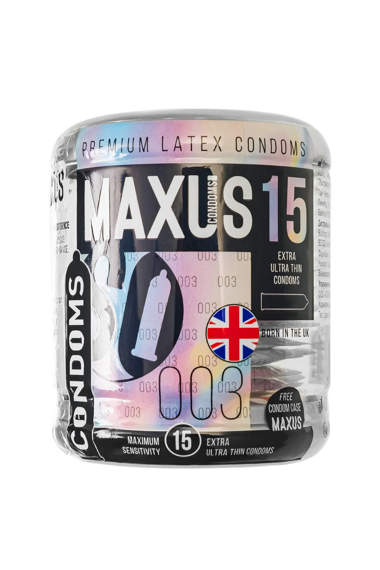 —Презервативы Maxus, тонкие, латекс, железный кейс, 18 см, 5,3 см, 15 шт.